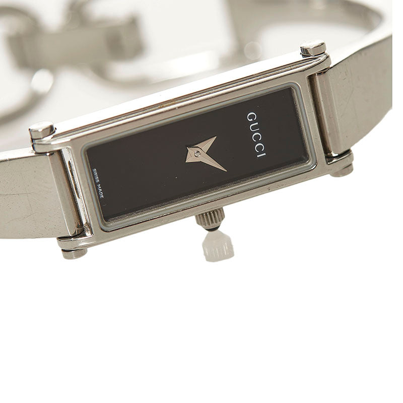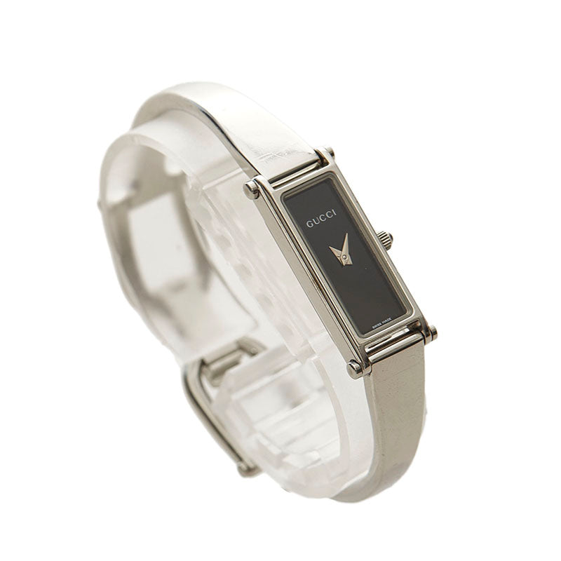 グッチ バングル 腕時計 1500L クオーツ ブラック文字盤 ステンレススチール レディース GUCCI 【中古】