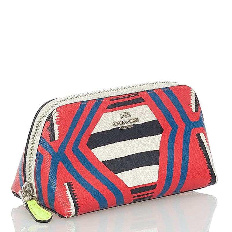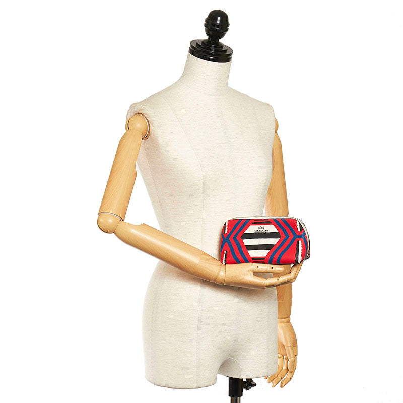 コーチ ポーチ 53216 レッド ブルー ブラック ホワイト マルチカラー PVC レディース COACH 【中古】