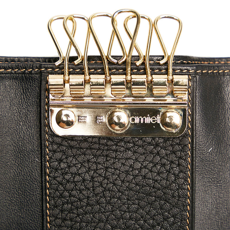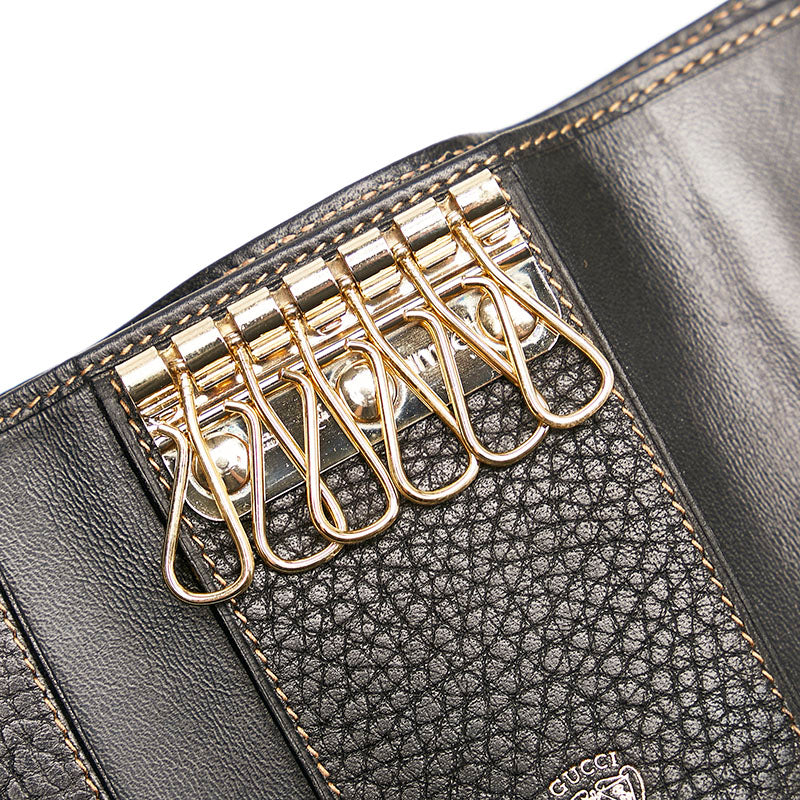 グッチ キーケース ブラック ゴールド レザー レディース GUCCI 【中古】