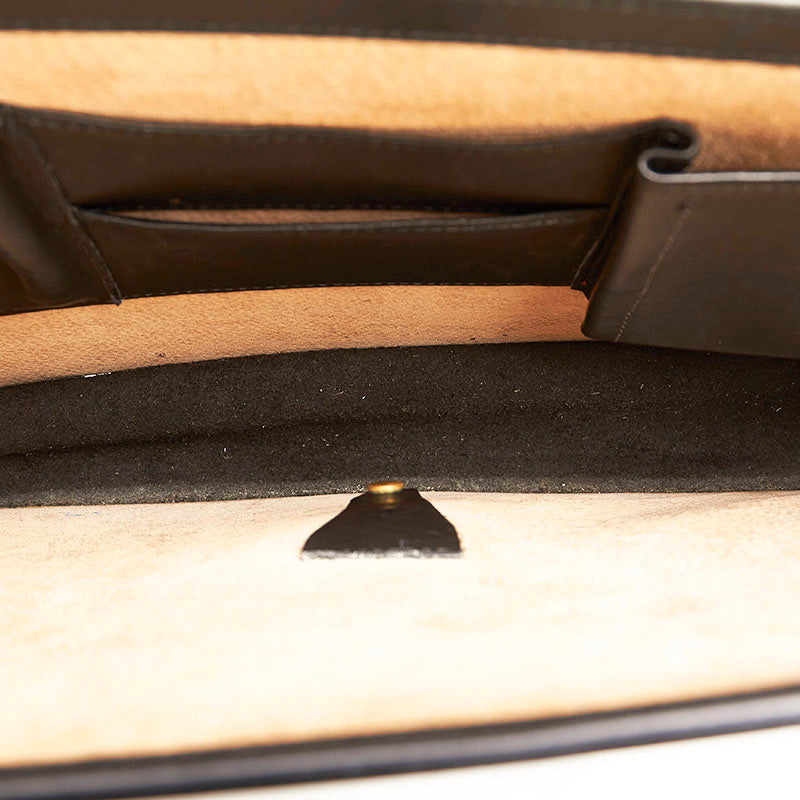 外側⇒複数のスレ・線キズ・若干のシワ サイド⇒スレ、コバにヘコミ・汚れ 底面⇒スレ・角スレ ハンドル⇒スレ 金具⇒クスミ・小キズ・メッキはがれ フラップ裏⇒複数のスレ・線キズ 内側⇒ペン跡・スレ・黒ズミ |