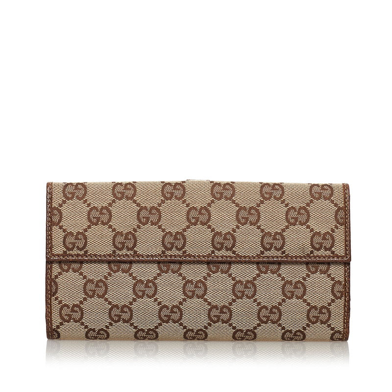 グッチ GGキャンバス ジャッキー 二つ折り財布 長財布 141430 ブラウン キャンバス レザー レディース GUCCI 【中古】