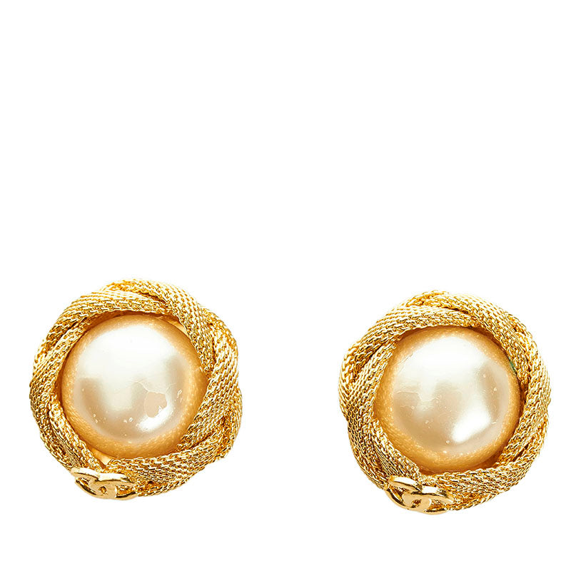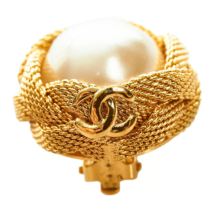 シャネル ココマーク イヤリング ゴールド ホワイト メッキ フェイクパール レディース CHANEL 【中古】