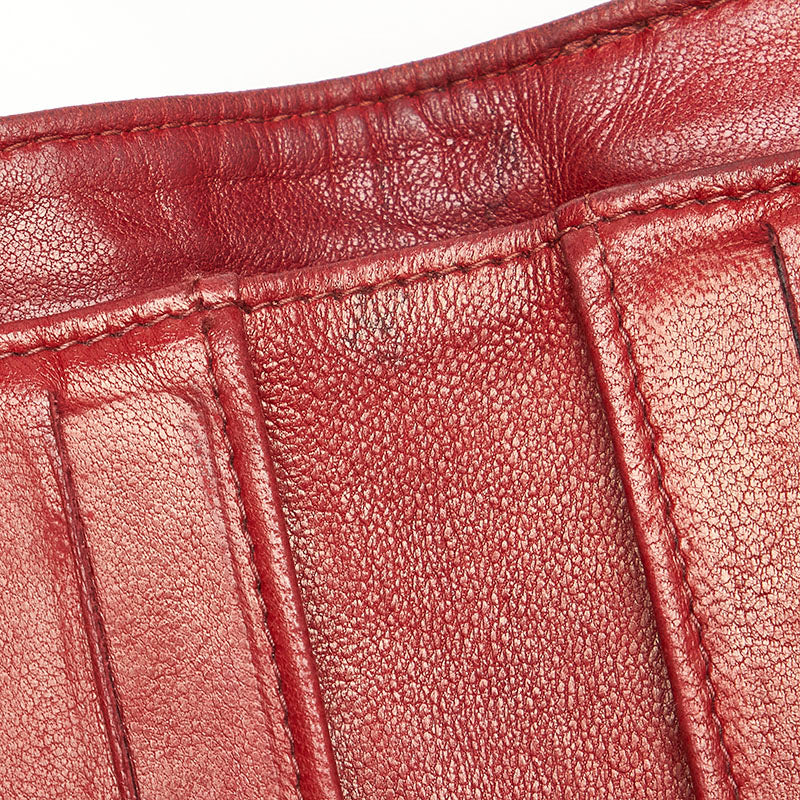 外側⇒僅かに汚れ・若干押し跡 サイド⇒フチスレ・角スレ・角汚れ 金具⇒小キズ フラップ付け根・裏⇒押し跡・黒ズミ・線キズ 内側⇒黒ズミ・線キズ・汚れ・押し跡・コイン跡 |