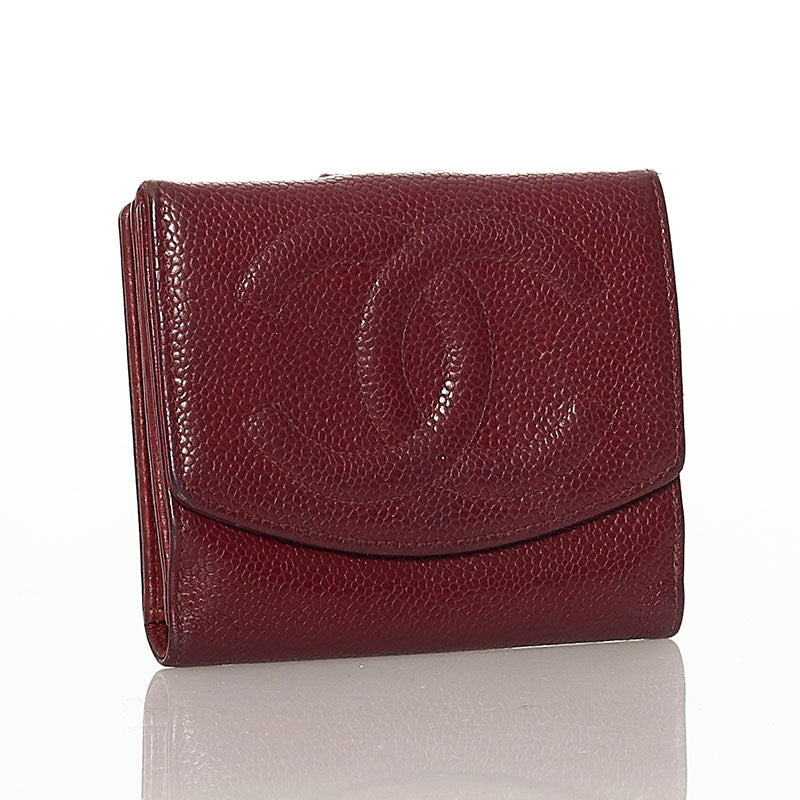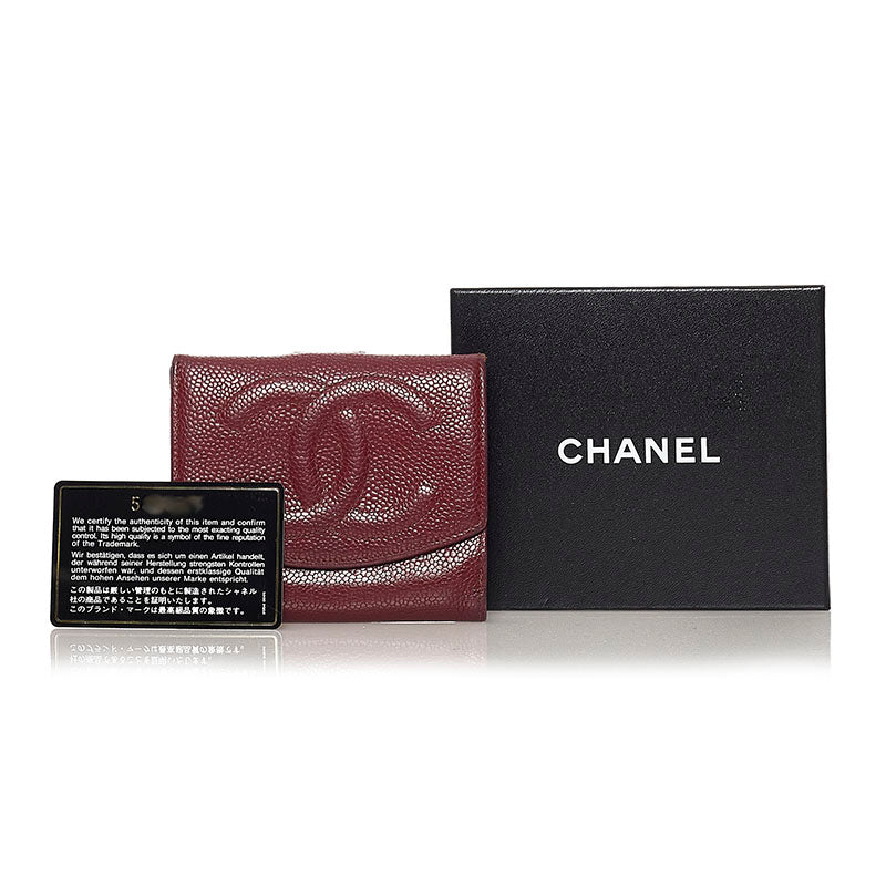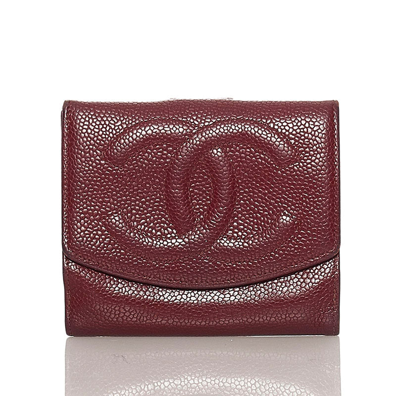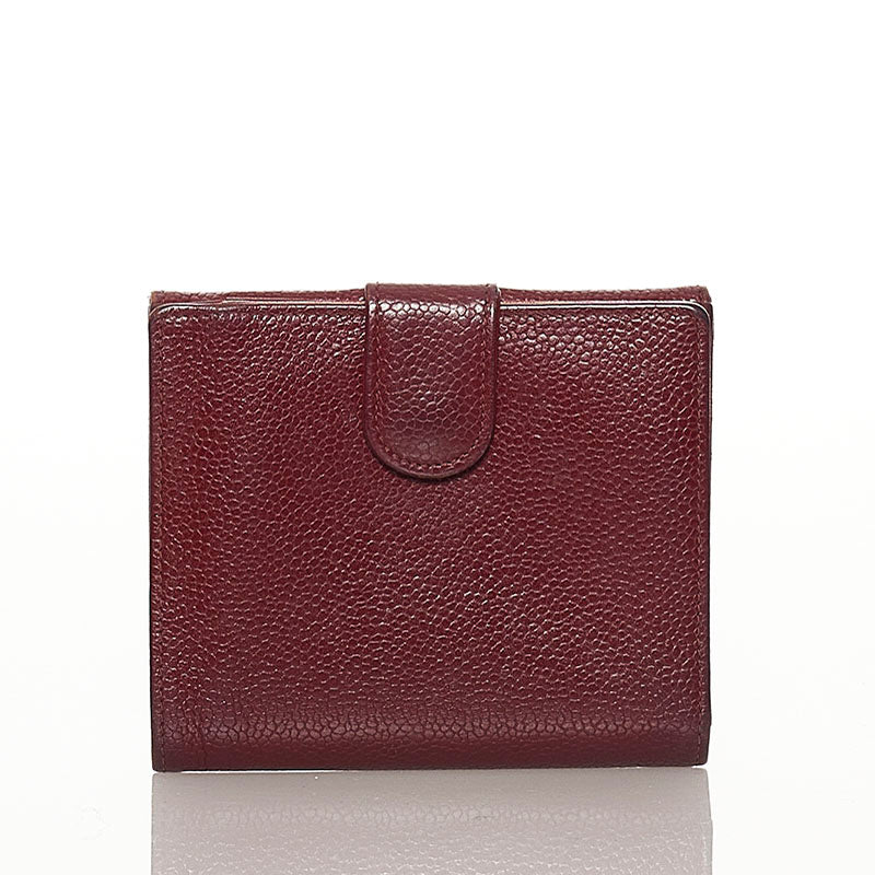 ココマーク 二つ折り財布 A13496 ボルドー キャビアスキン レディース 【中古】