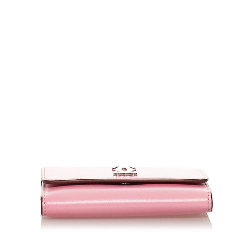 カルティエ ドゥーブルC 二つ折り財布 ピンク レザー レディース CARTIER 【中古】
