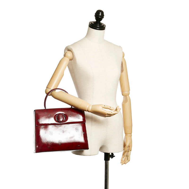 カルティエ ハッピーバースデー ハンドバッグ ボルドー エナメル レディース CARTIER 【中古】