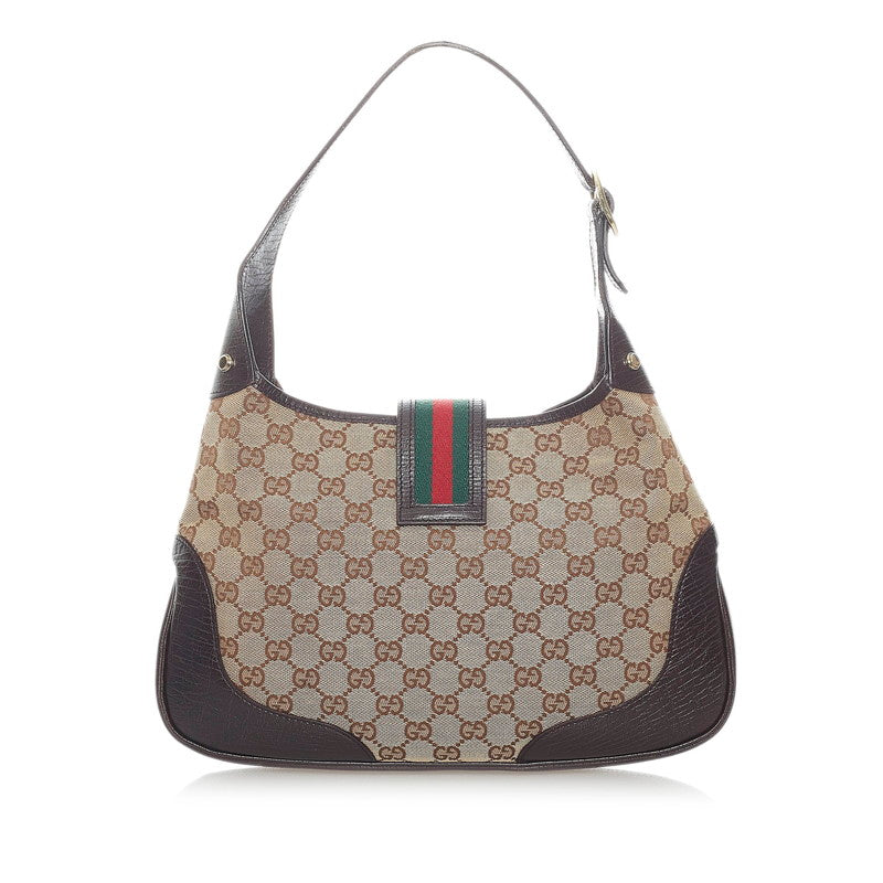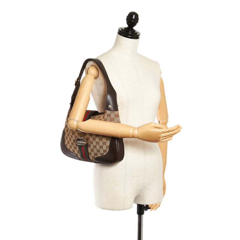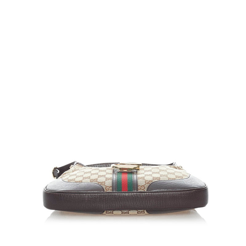 グッチ GGキャンバス シェリーライン ワンショルダーバッグ 130779 ベージュ ブラウン キャンバス レザー レディース GUCCI 【中古】