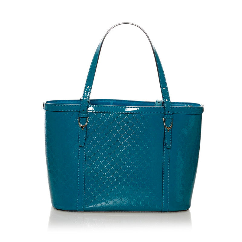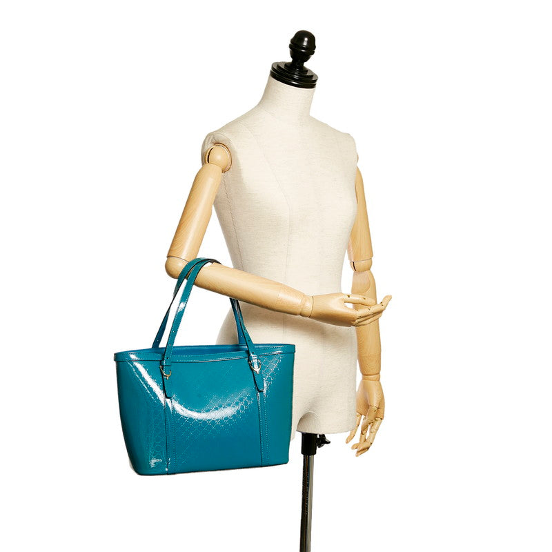 グッチ マイクログッチシマ トートバッグ 336776 ブルー グリーン エナメル レディース GUCCI 【中古】