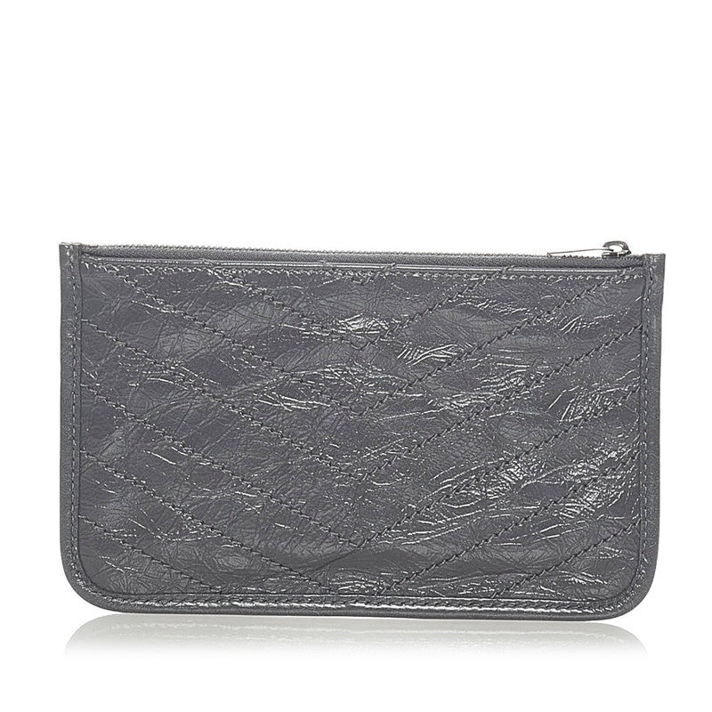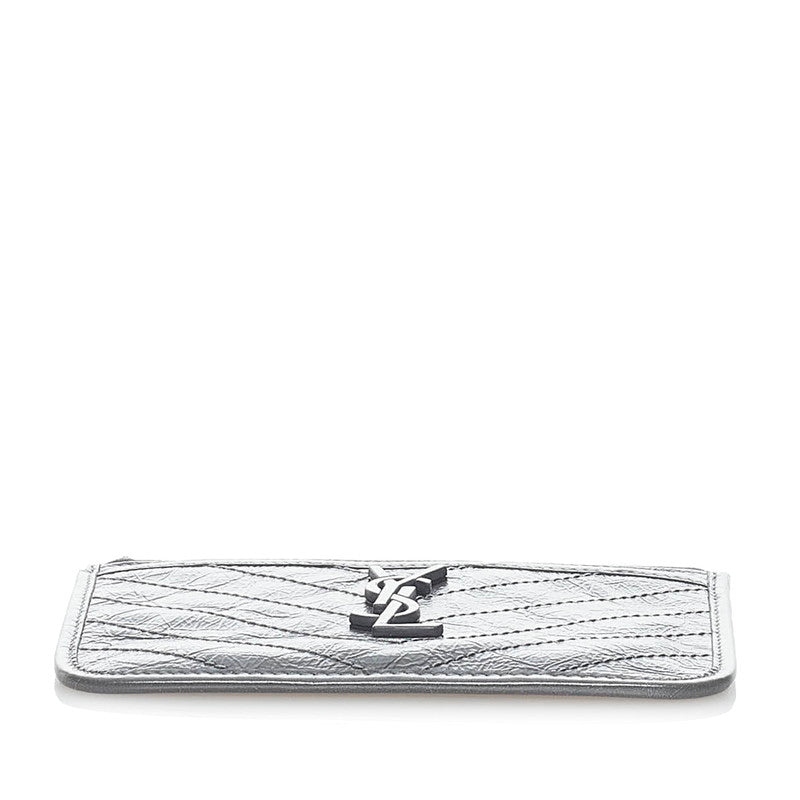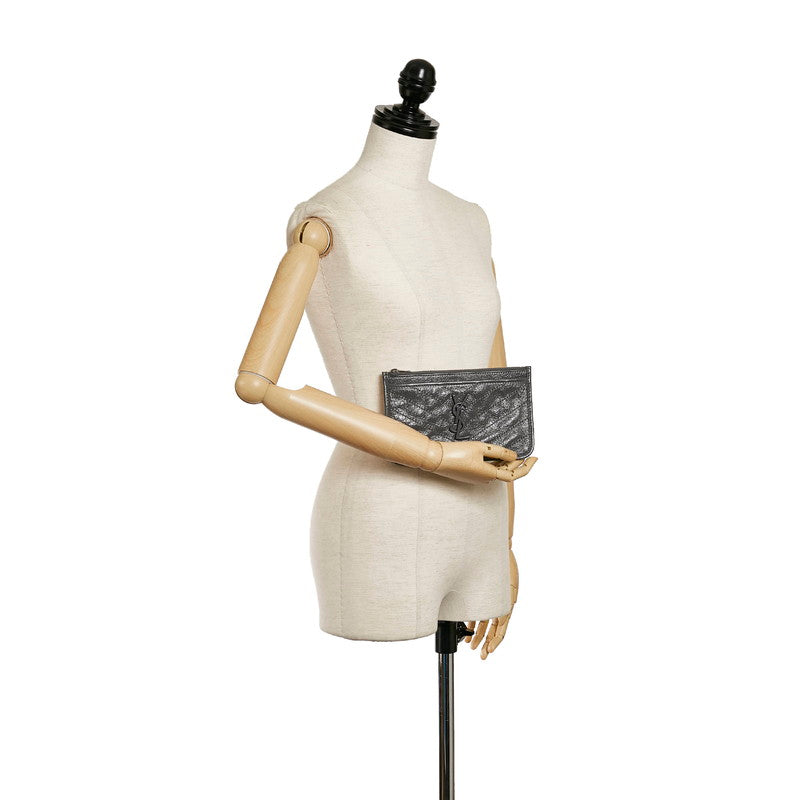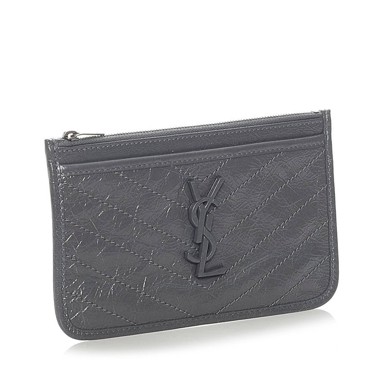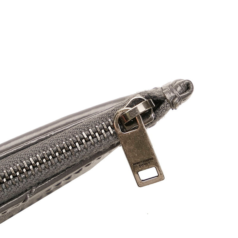 サンローラン ロゴ Vステッチ ポーチ グレー レザー レディース SAINT LAURENT 【中古】
