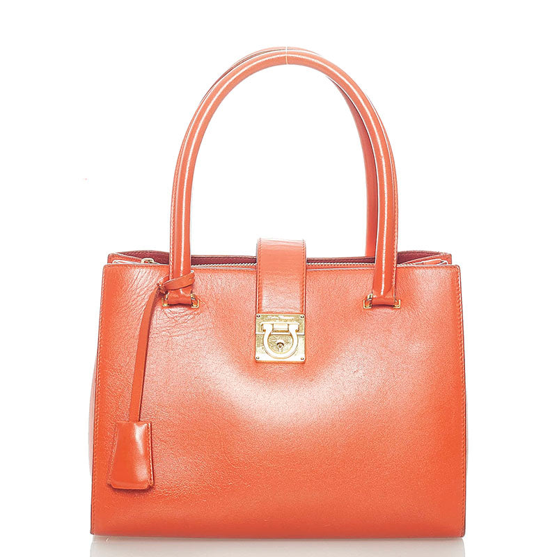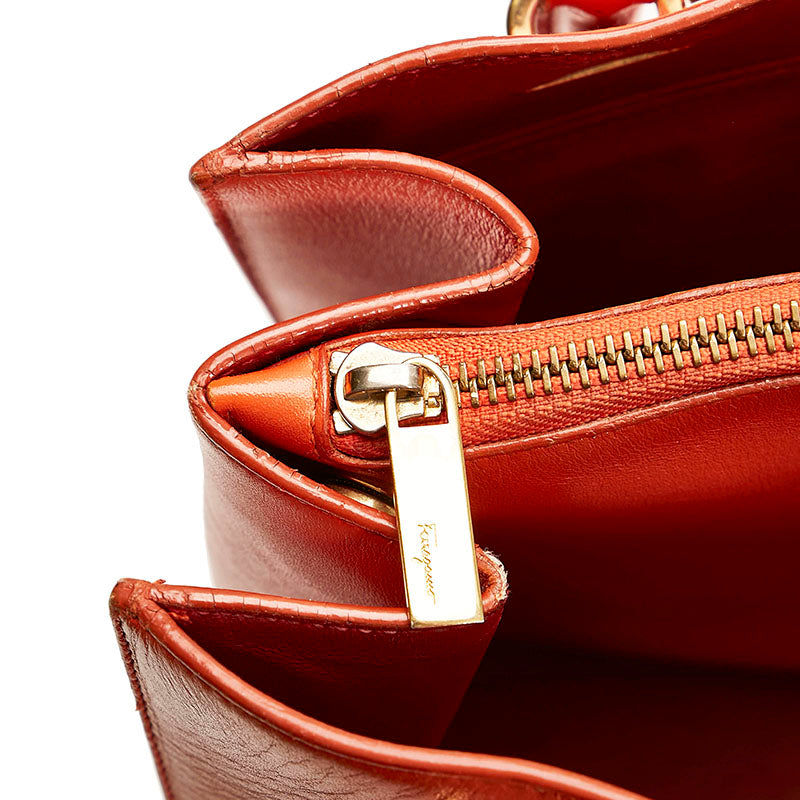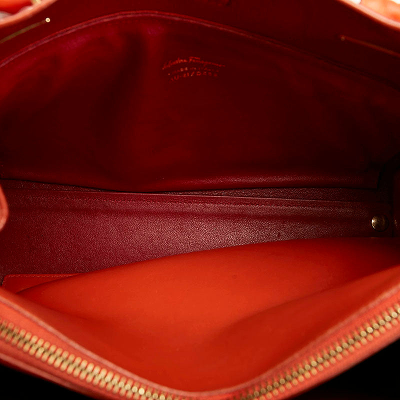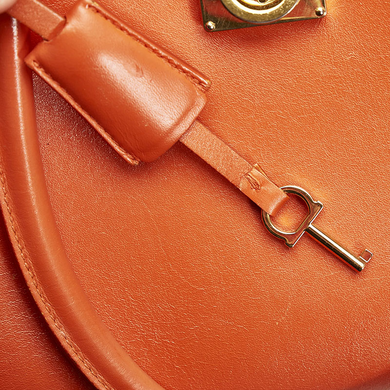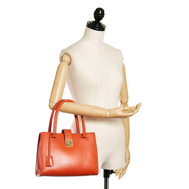 サルヴァトーレフェラガモ ガンチーニ ハンドバッグ AU-21 / D658 オレンジ レザー レディース Salvatore Ferragamo 【中古】