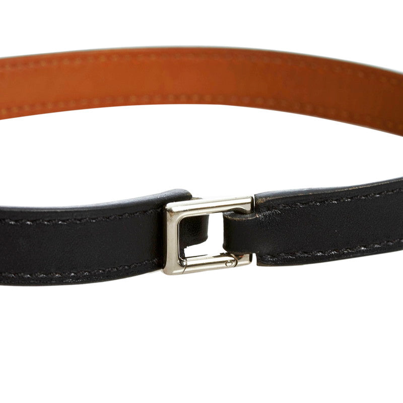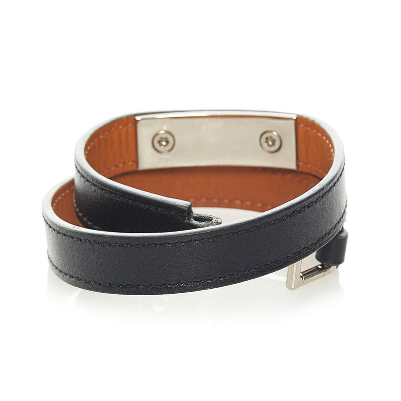 エルメス リヴァル ドゥブルトゥール ブレスレット ブラック シルバー レザー メタル レディース HERMES 【中古】