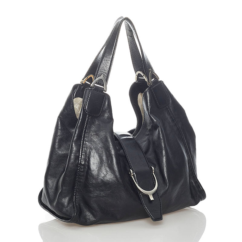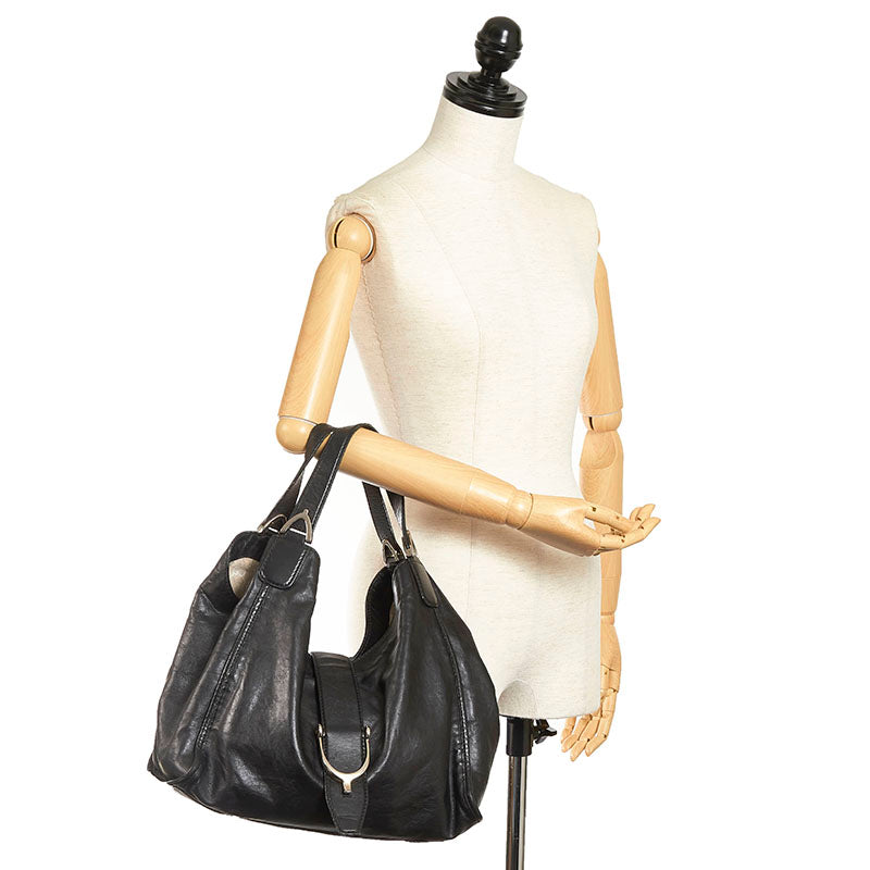 グッチ ソフト スティラップ ショルダーバッグ 296856 ブラック レザー レディース GUCCI 【中古】