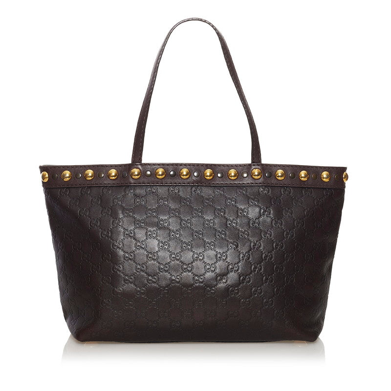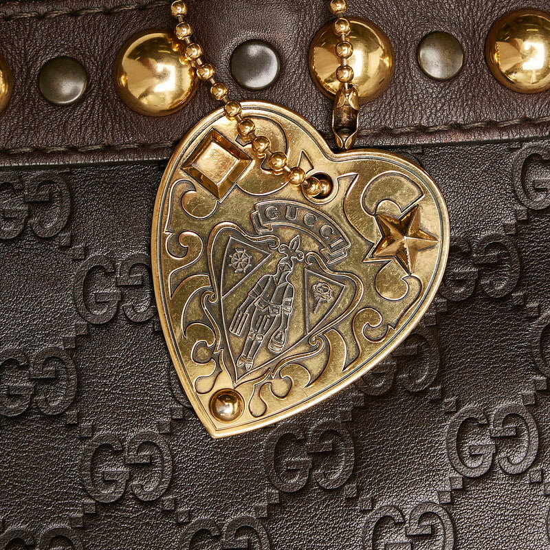 グッチ グッチシマ ヒステリア スタッズ クレストチャーム トートバッグ 207291 ブラウン レザー レディース GUCCI 【中古】