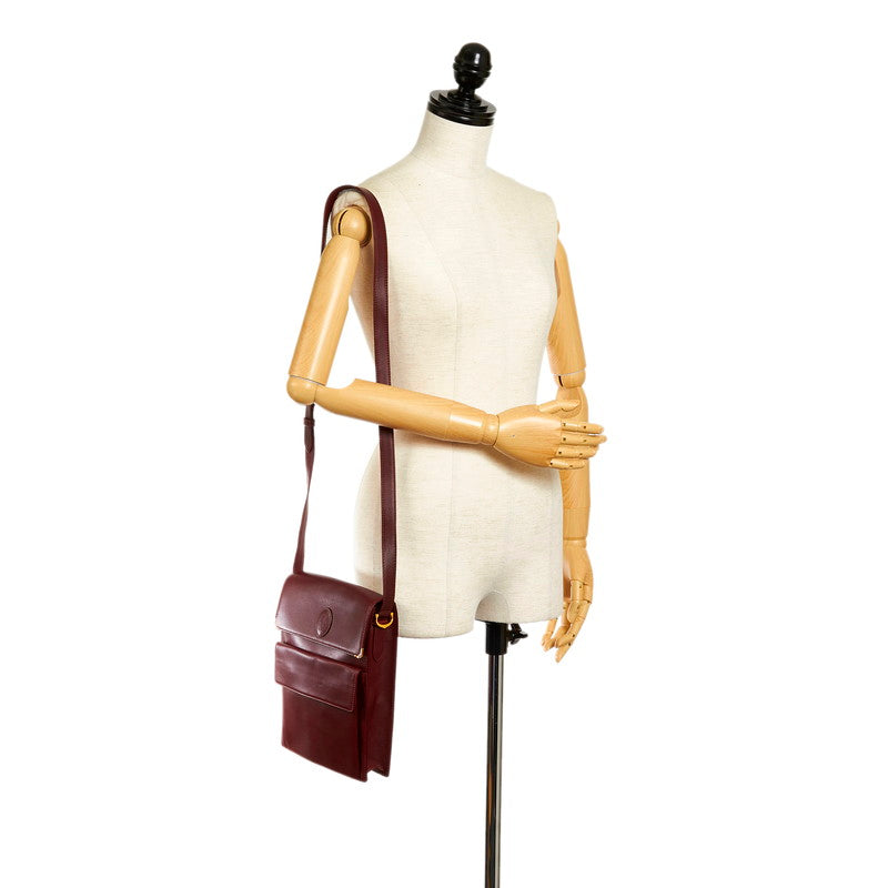 カルティエ マストライン 斜め掛け ショルダーバッグ ボルドー レザー レディース CARTIER 【中古】