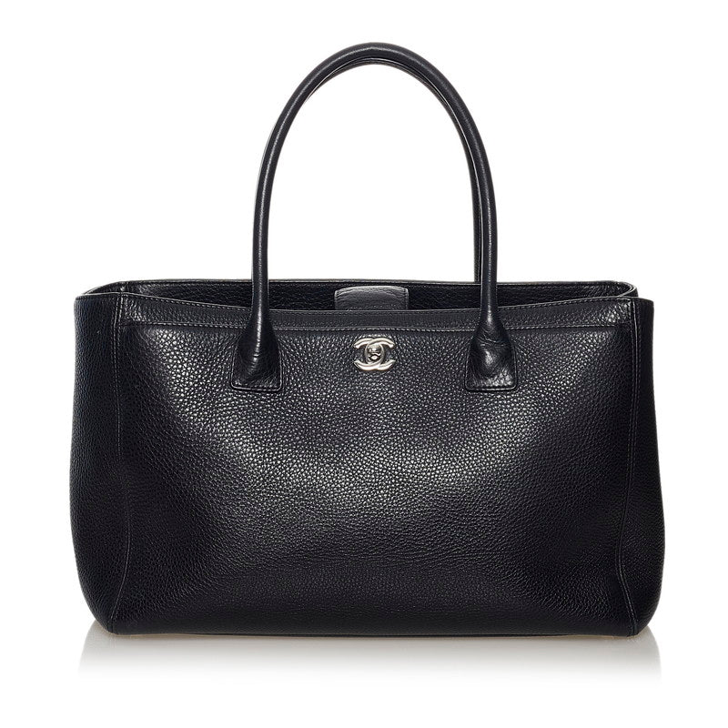 シャネル エクゼクティブライン トートバッグ ブラック シルバー レザー レディース CHANEL 【中古】
