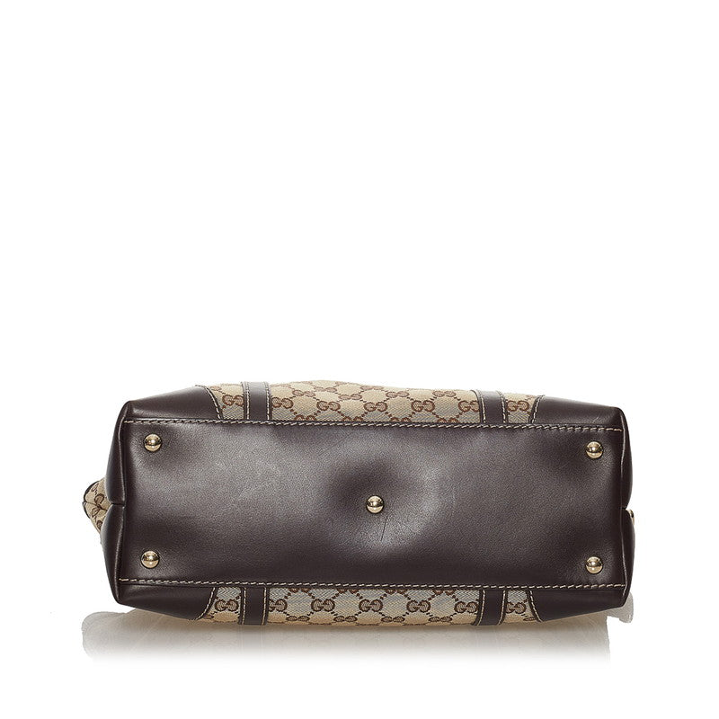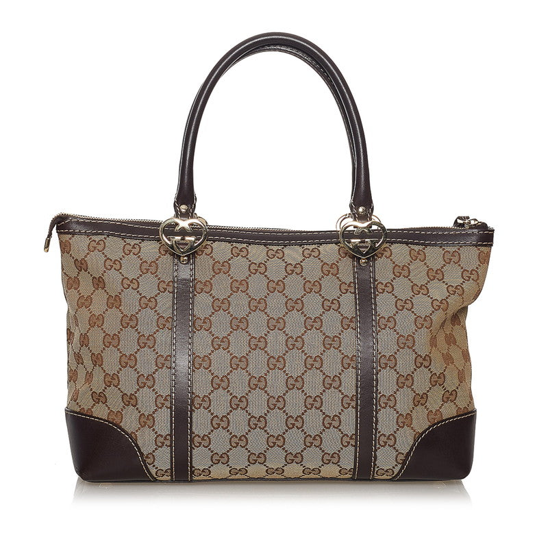 グッチ GGキャンバス ラブリートート ハンドバッグ 257069 ブラウン ベージュ キャンバス レザー レディース GUCCI 【中古】