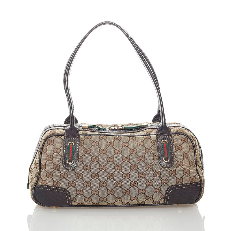 グッチ GGキャンバス プリンシー ハンドバッグ 161720 ベージュ ブラウン キャンバス レザー レディース GUCCI 【中古】
