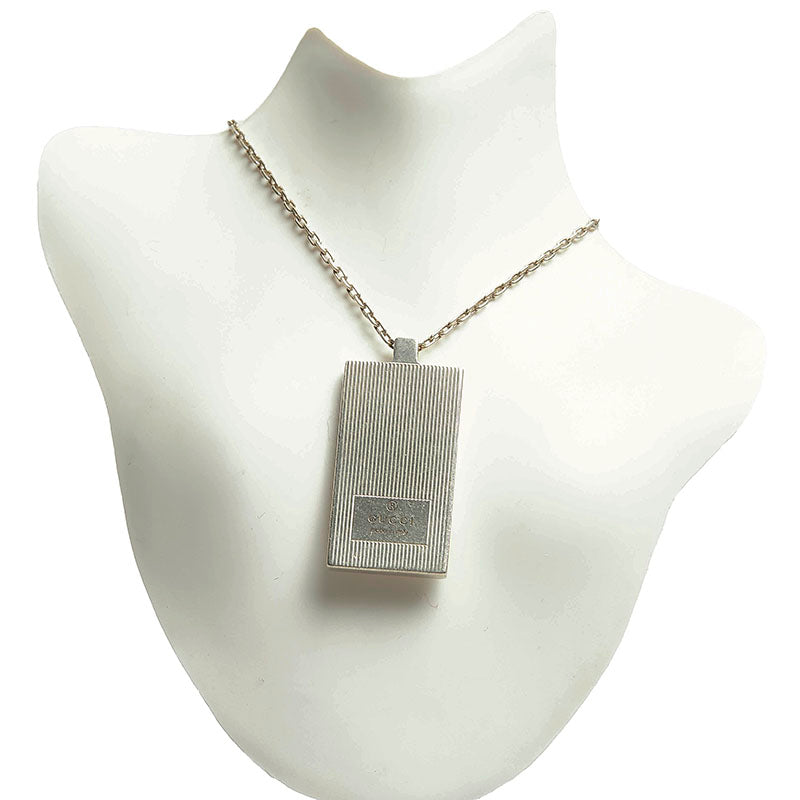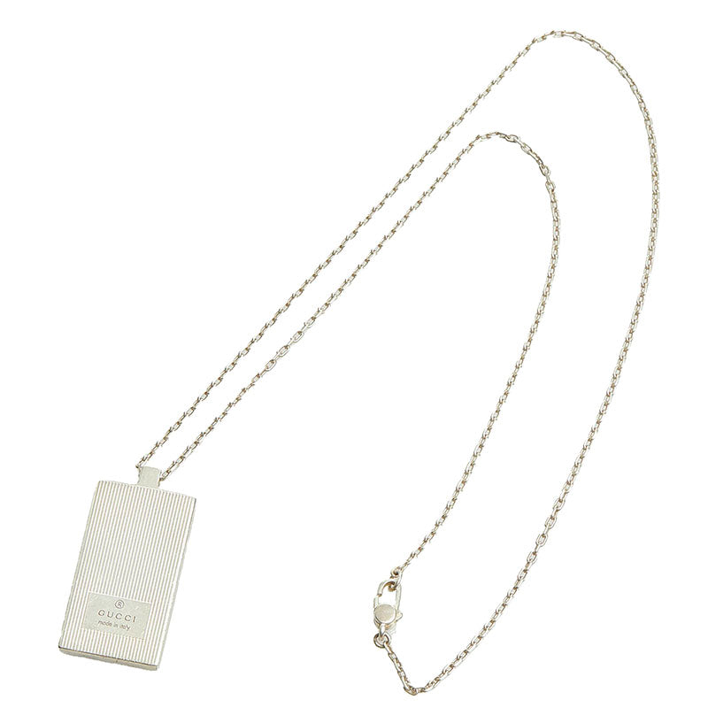 グッチ ロゴ プレート ネックレス シルバー メタル レディース GUCCI 【中古】