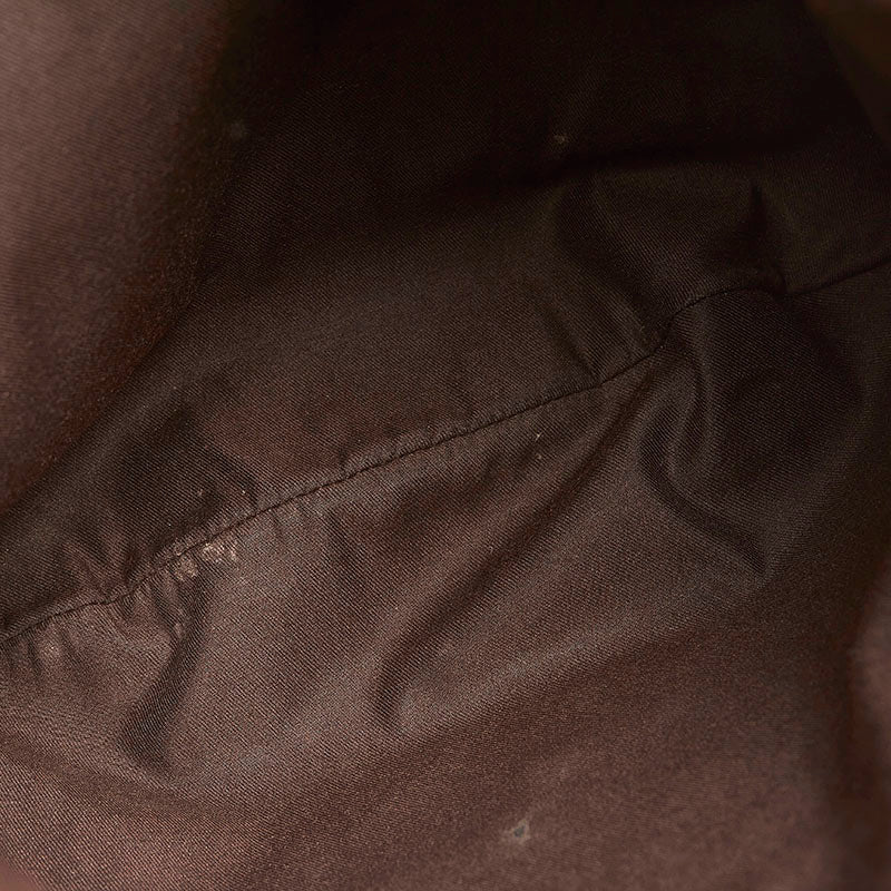 外側⇒スレ・線キズ・薄汚れ・シミ 底面⇒型崩れ ショルダー⇒スレ・ヨレ・金具跡・コバひび割れ 金具⇒小キズ 開閉口⇒スレ・ヨレ 内側⇒ファスナー付近糸ほつれ・シミ・フロントのロゴの押し跡 |