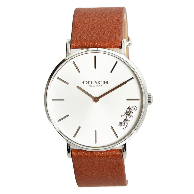 コーチ ペリー 腕時計 14503120 クオーツ シルバー文字盤 ステンレス レザー レディース COACH 【中古】