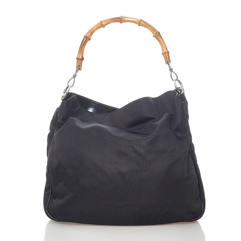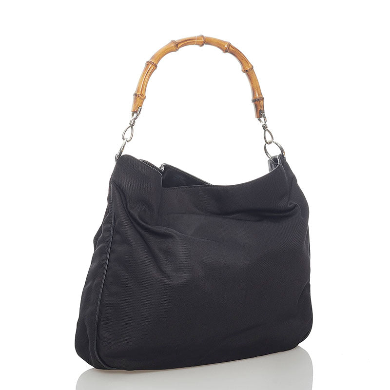 グッチ バンブー ショルダーバッグ 2WAY 001 1577 ブラック ナイロン レザー レディース GUCCI 【中古】