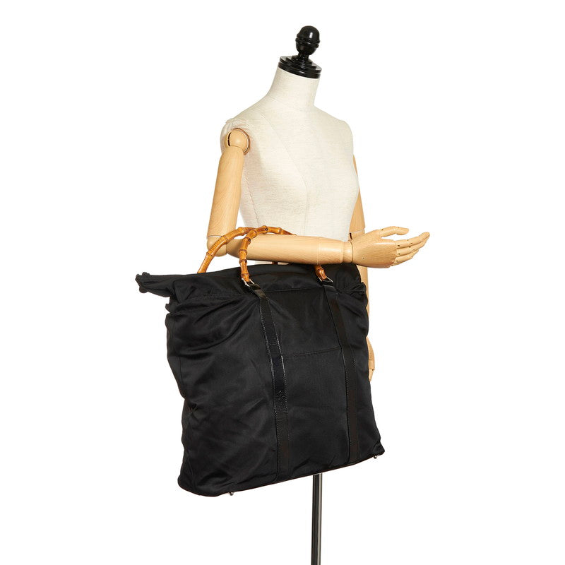 グッチ バンブー トートバッグ ボストンバッグ 002 2854 ブラック キャンバス レザー レディース GUCCI 【中古】