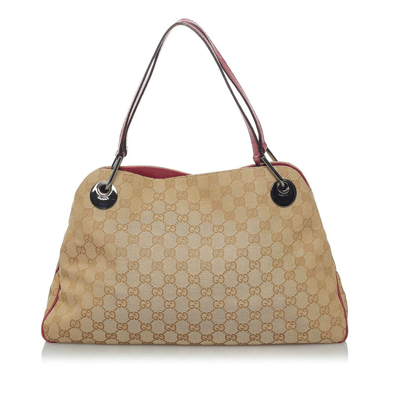 グッチ GGキャンバス ハンドバッグ トートバッグ 121023 ベージュ レッド キャンバス レザー レディース GUCCI 【中古】
