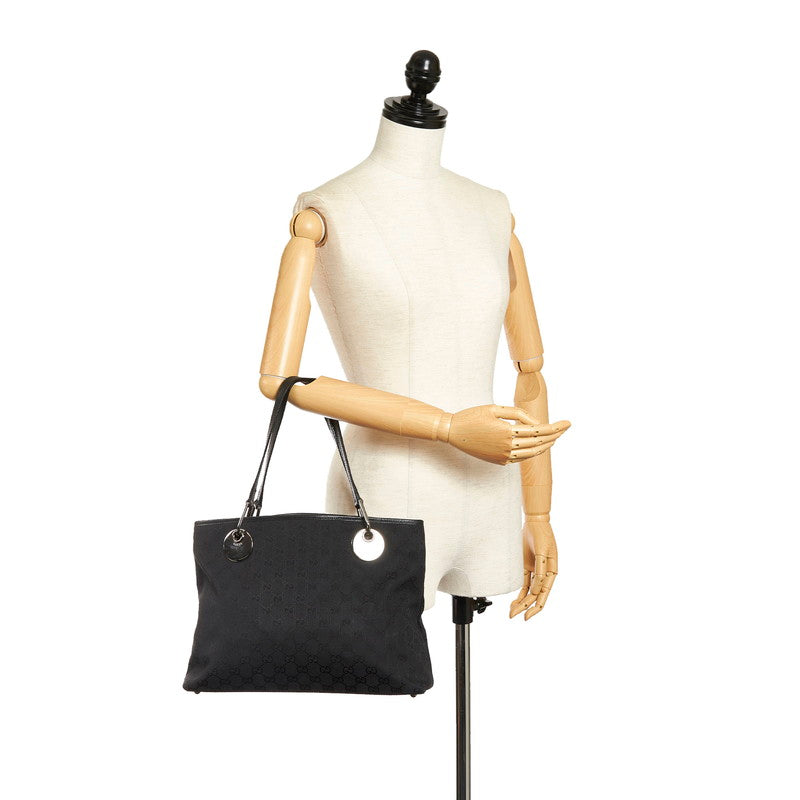 グッチ GGキャンバス ショルダーバッグ トートバッグ 120837 ブラック キャンバス レザー レディース GUCCI 【中古】