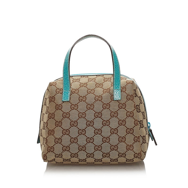 グッチ GGキャンバス ハンドバッグ 124542 ベージュ ブルー キャンバス レザー レディース GUCCI 【中古】
