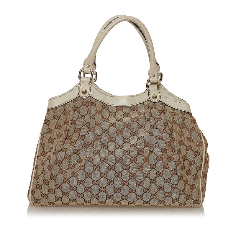 グッチ GGキャンバス スーキー ハンドバッグ 211944 ベージュ ホワイト キャンバス レザー レディース GUCCI 【中古】