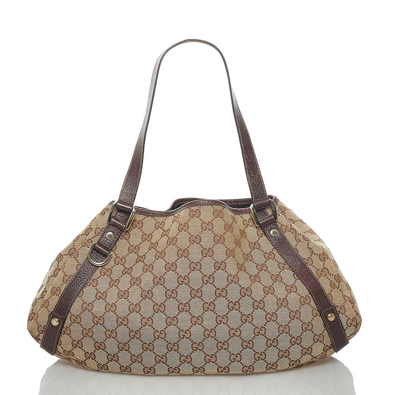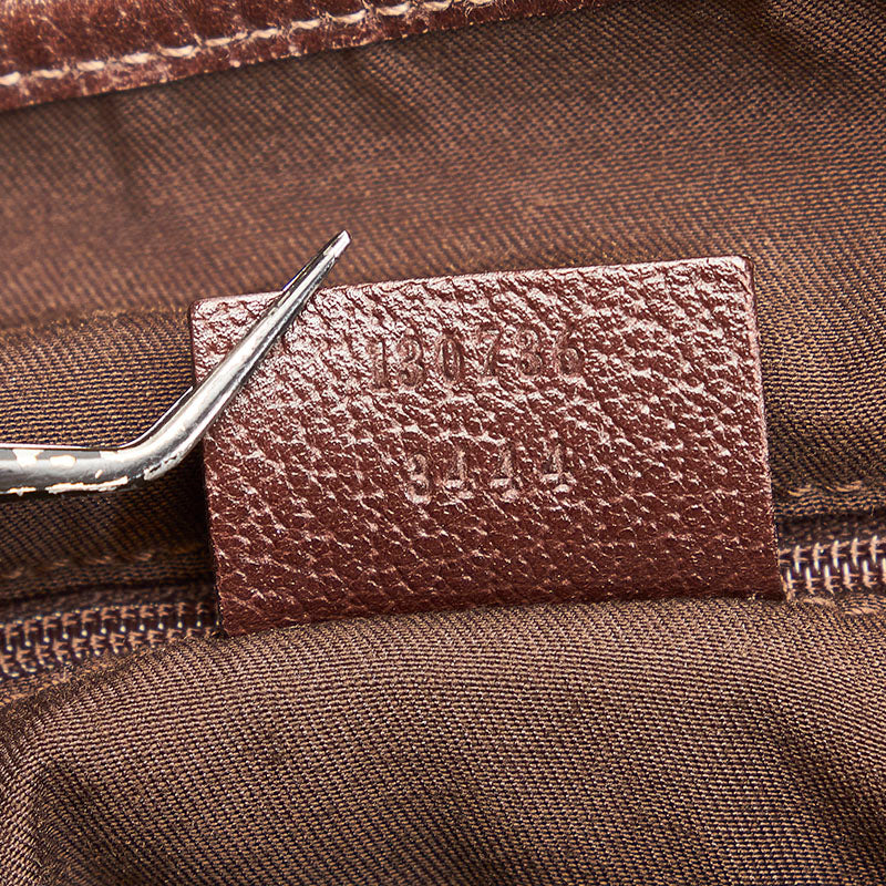 グッチ GGキャンバス ハンドバッグ 130736 ベージュ ブラウン キャンバス レザー レディース GUCCI 【中古】