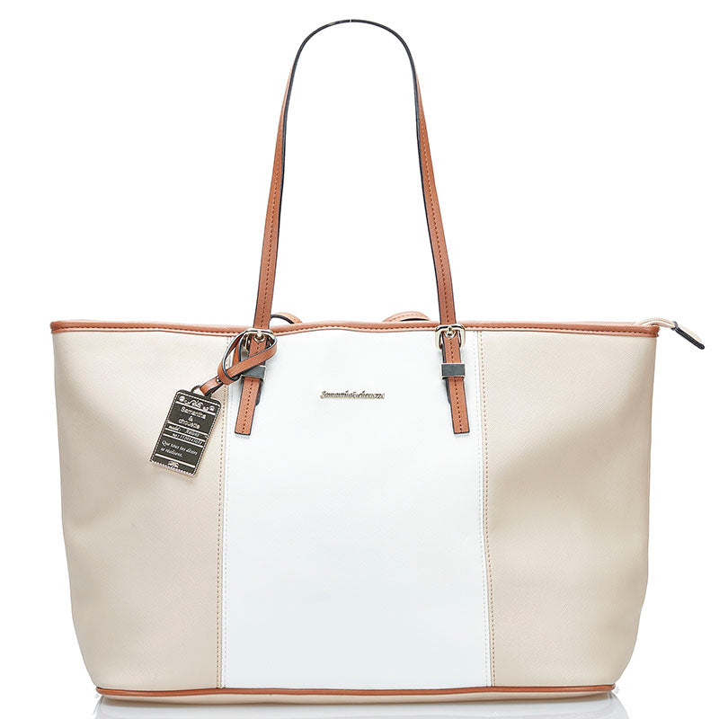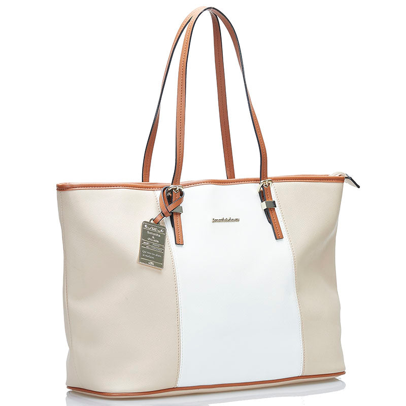 サマンサタバサ トートバッグ ベージュ ホワイト レザー レディース Samantha Thavasa 【中古】