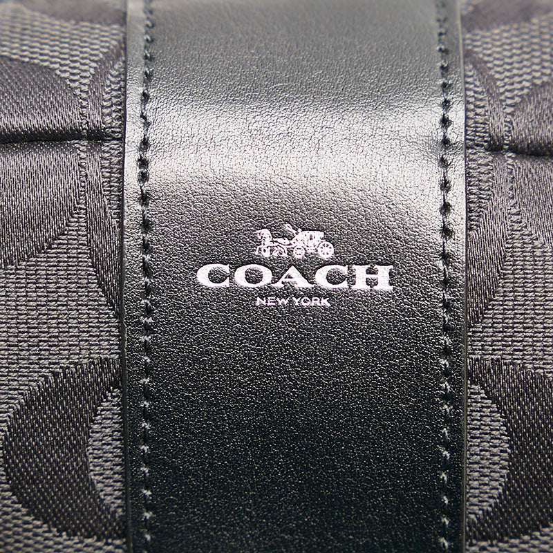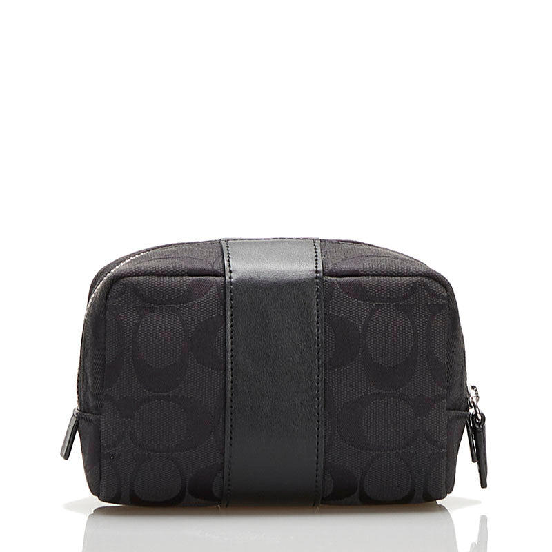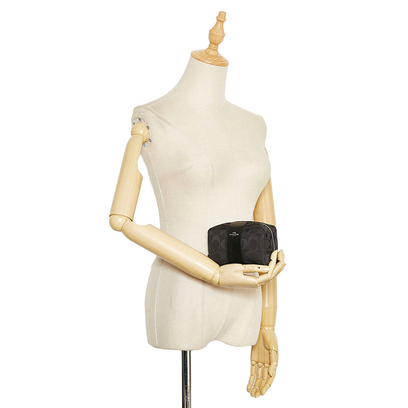 コーチ シグネチャー ポーチ ブラック キャンバス レザー レディース COACH 【中古】