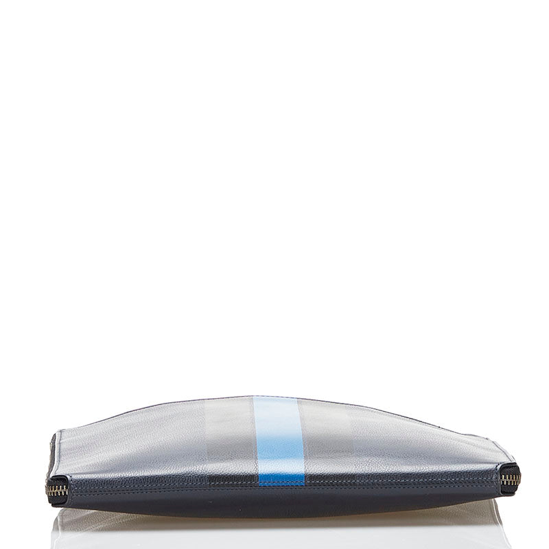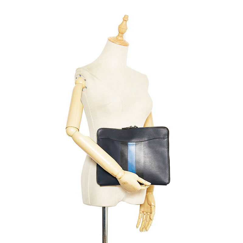 コーチ ストライプ クラッチバッグ セカンドバッグ F66312 ネイビー ブルー レザー メンズ COACH 【中古】