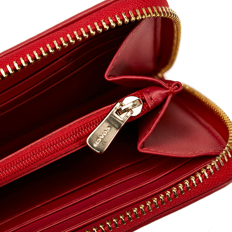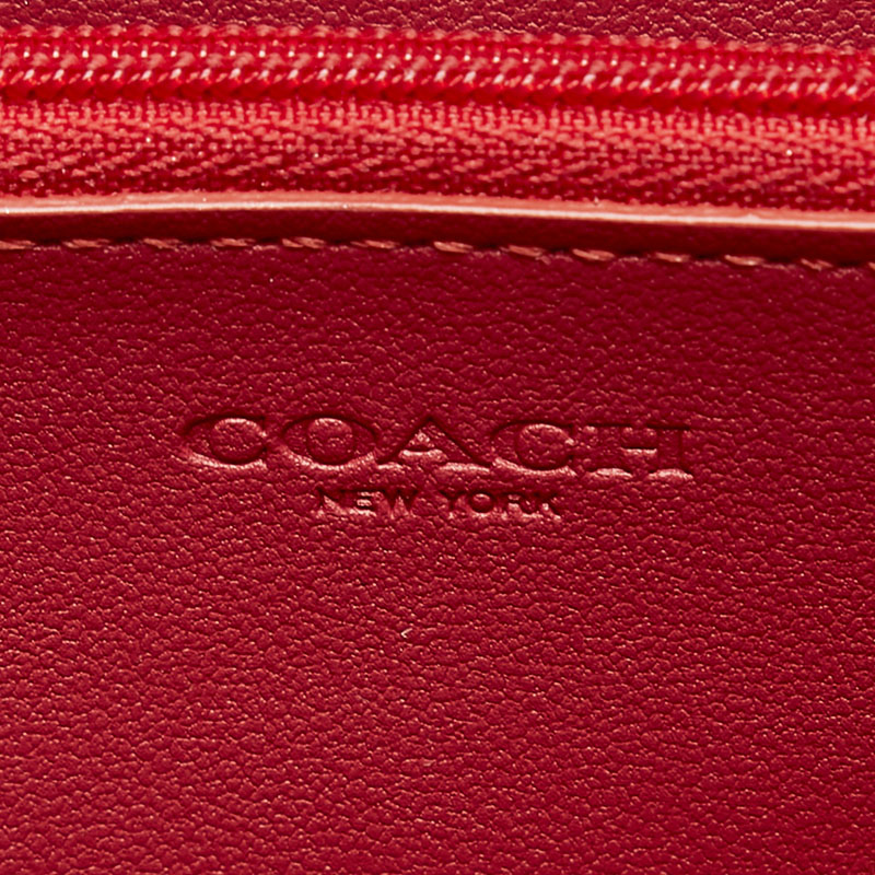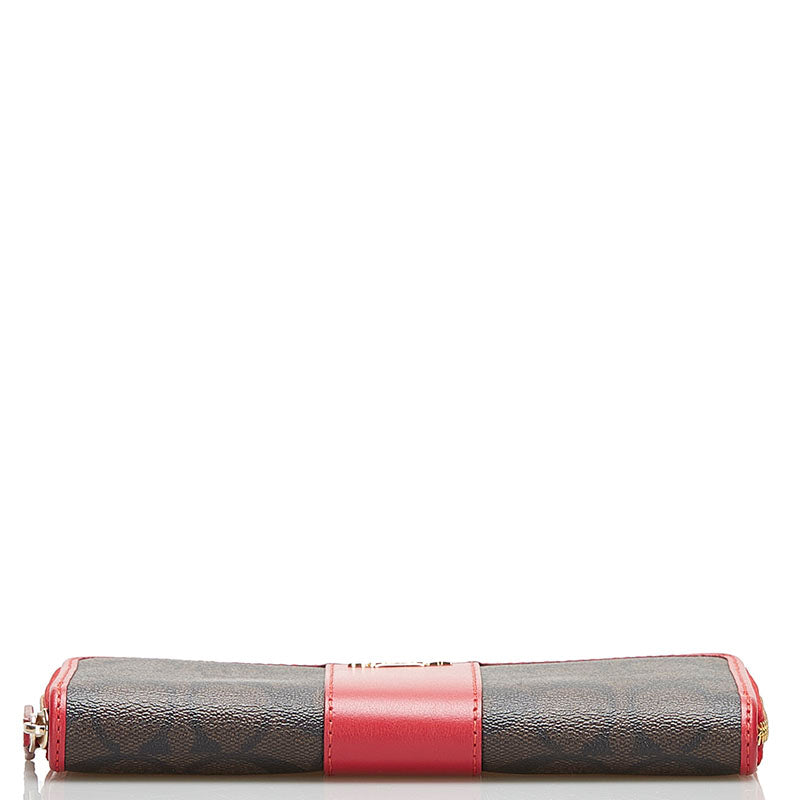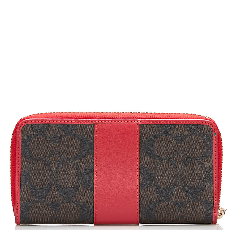 コーチ シグネチャー ラウンドファスナー 長財布 54630 ブラウン レッド PVC レザー レディース COACH 【中古】