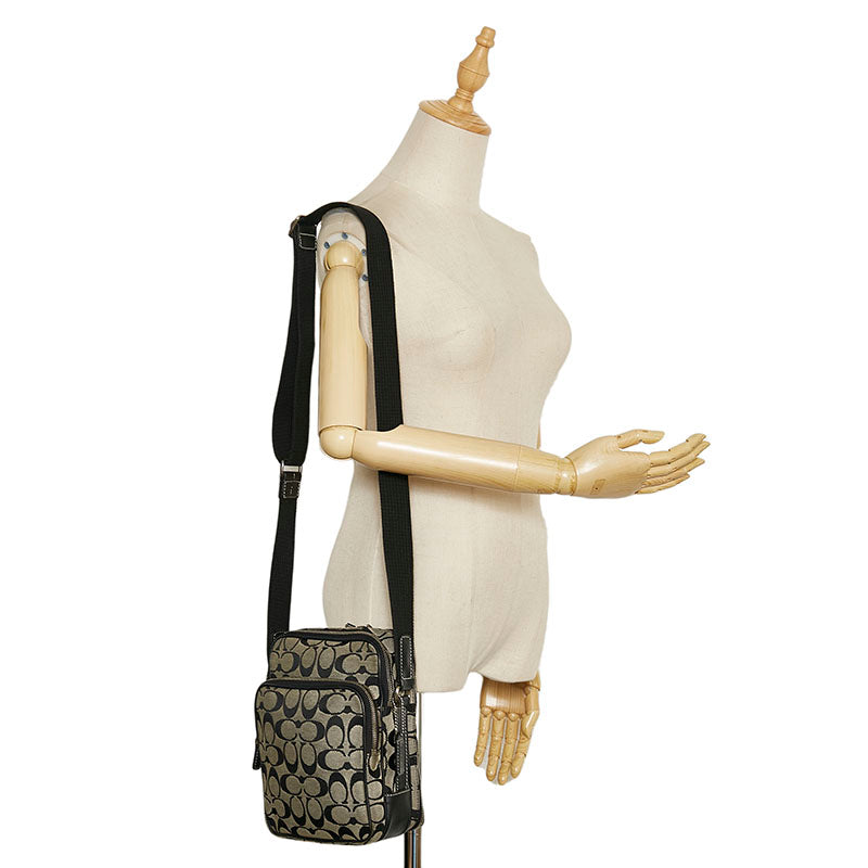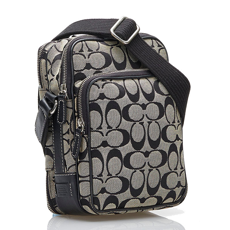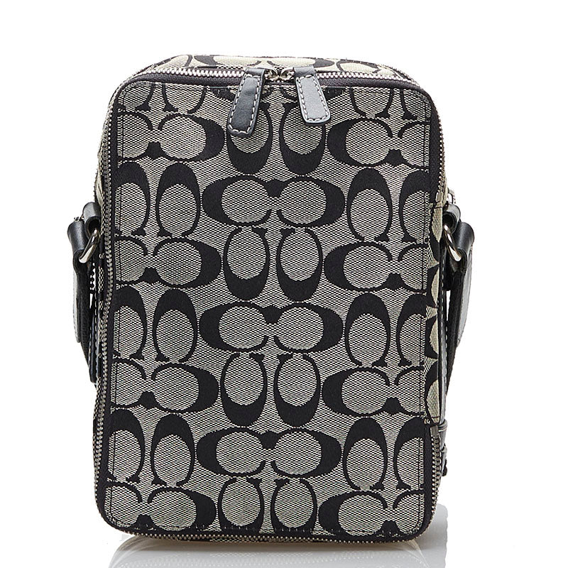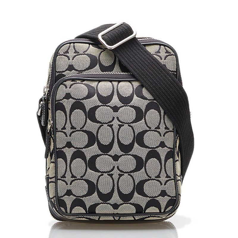 コーチ シグネチャー 斜め掛け ショルダーバッグ 4270 ブラック グレー キャンバス レザー レディース COACH 【中古】
