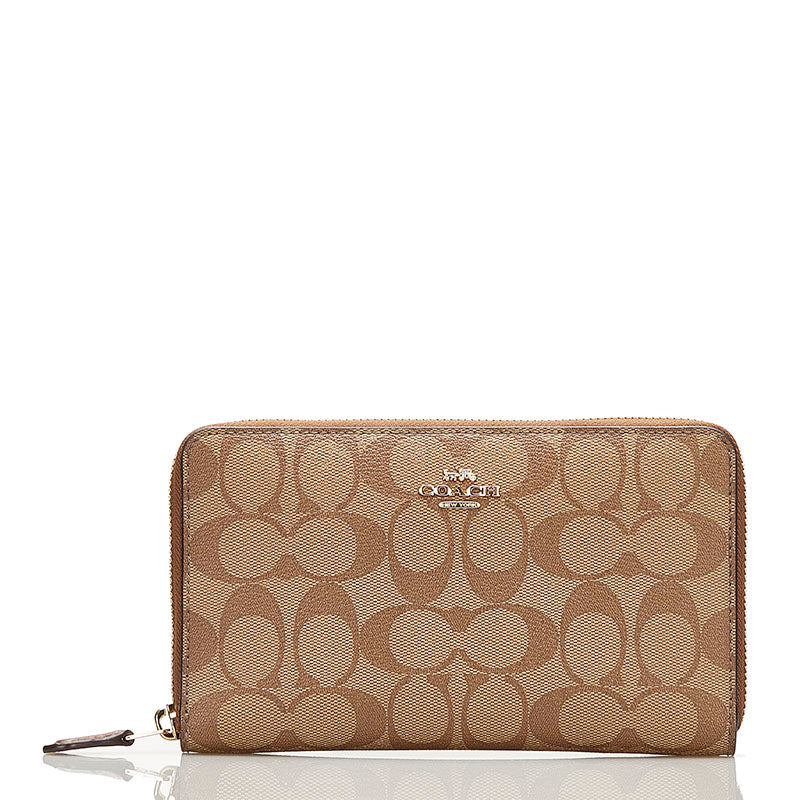 コーチ シグネチャー ラウンドファスナー 長財布 F76579 ブラウン PVC レディース COACH 【中古】