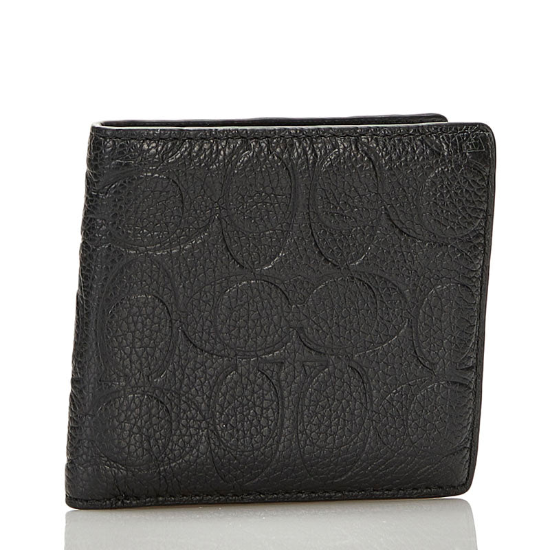 コーチ シグネチャー 二つ折り財布 ブラック レザー メンズ COACH 【中古】