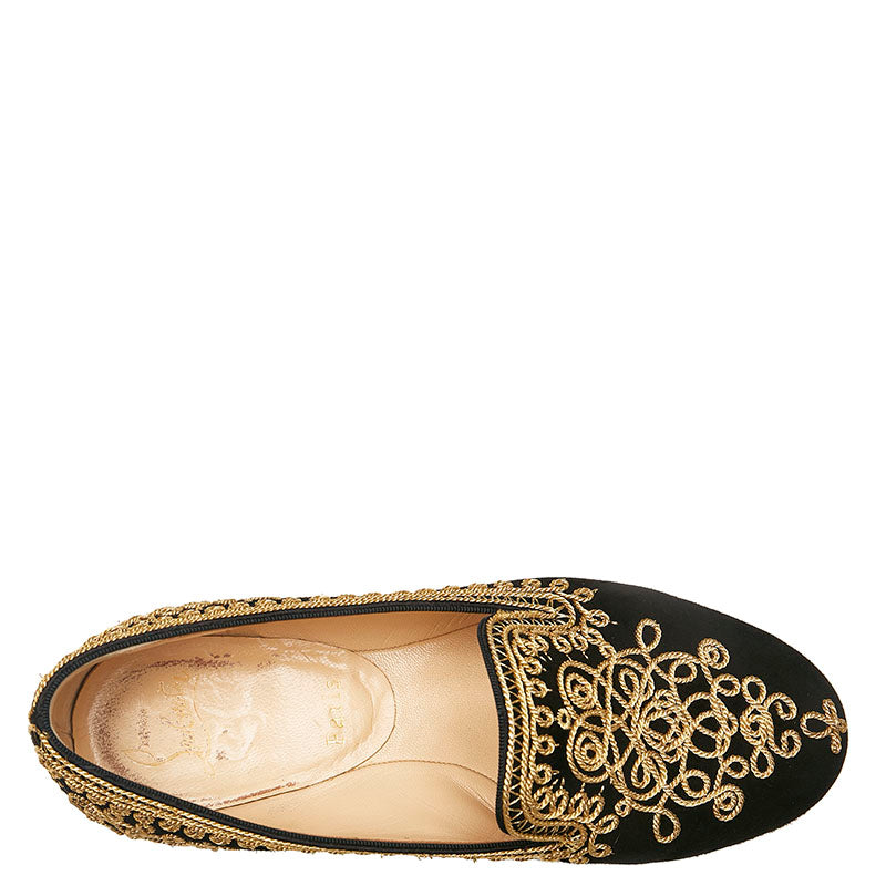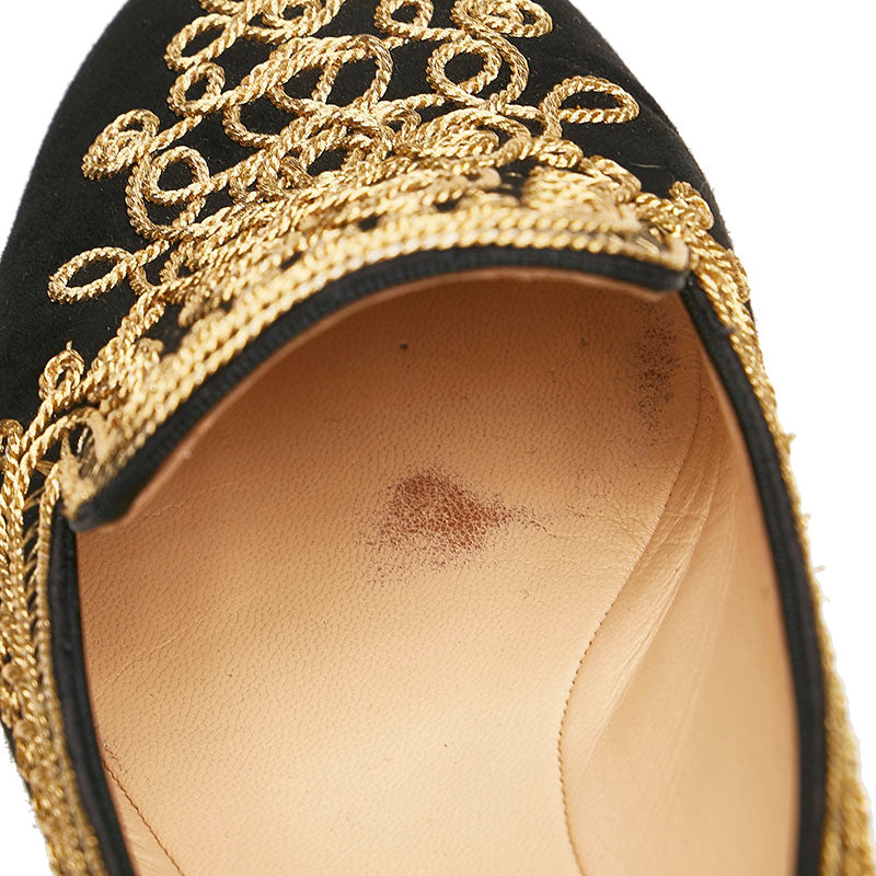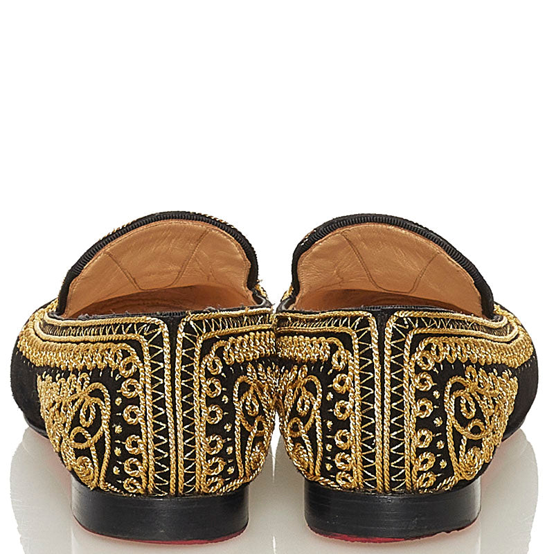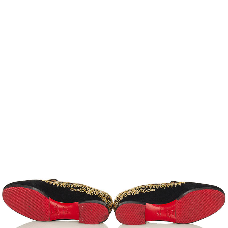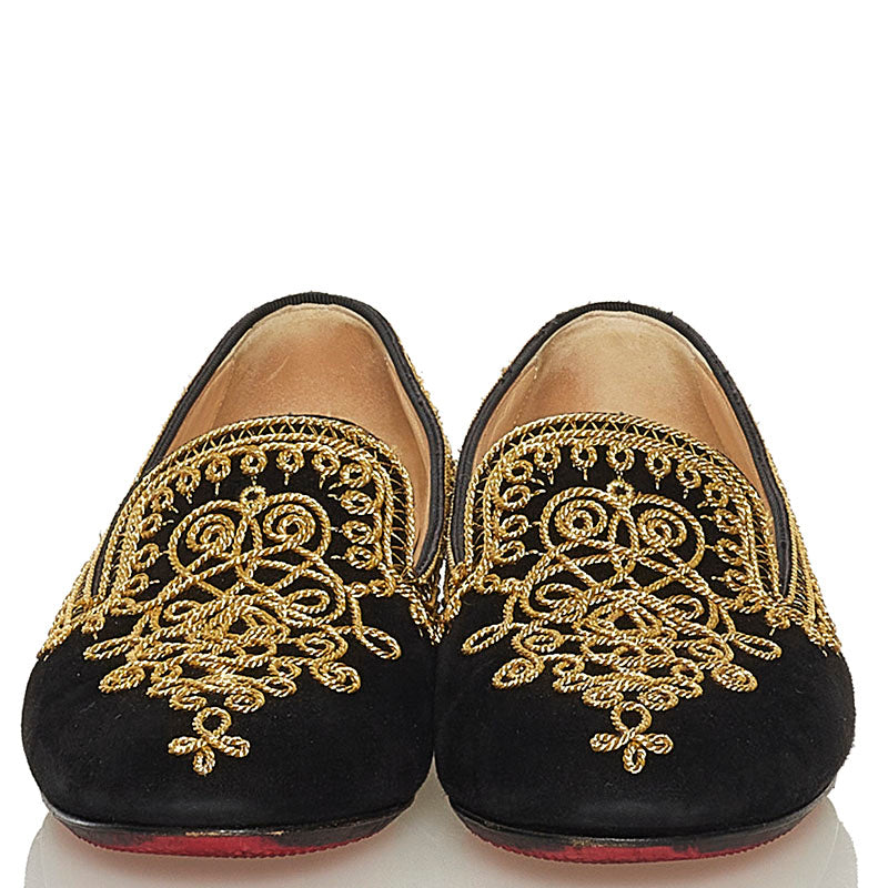 クリスチャンルブタン 刺繍 パンプス フラットシューズ ブラック スウェード レディース Christian Louboutin 【中古】