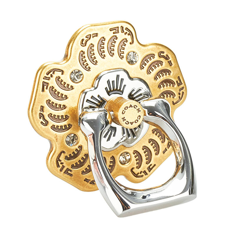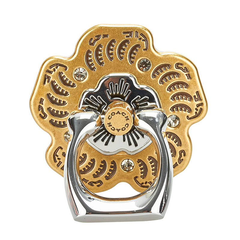 コーチ フラワー ラインストーン スマホリング ゴールド シルバー メタル メッキ レディース COACH 【中古】