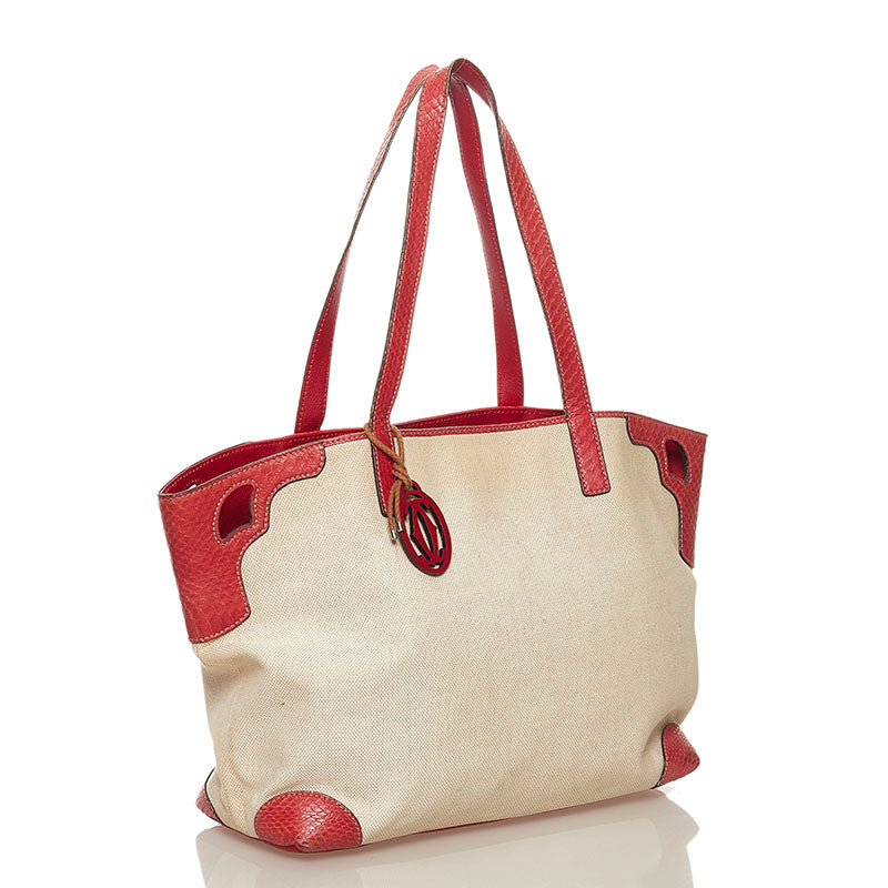 カルティエ マルチェロ ショルダーバッグ トートバッグ ベージュ ピンク キャンバス レザー レディース CARTIER 【中古】