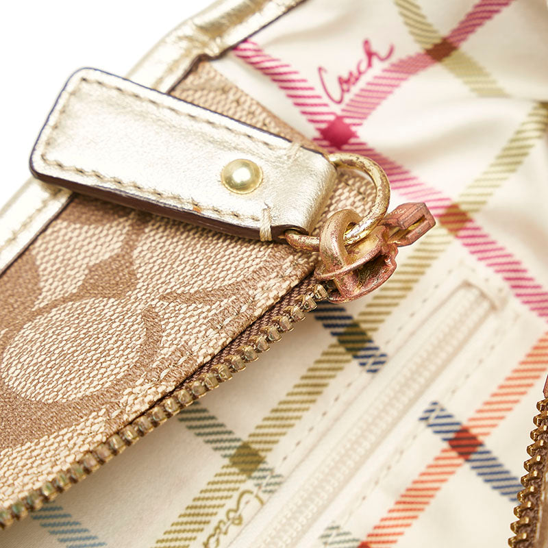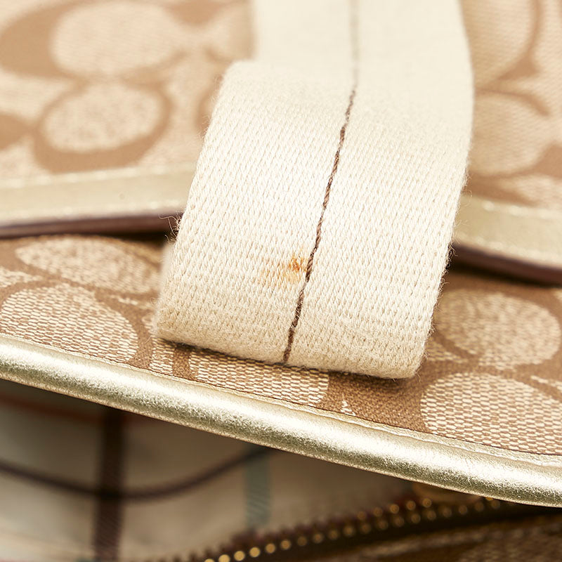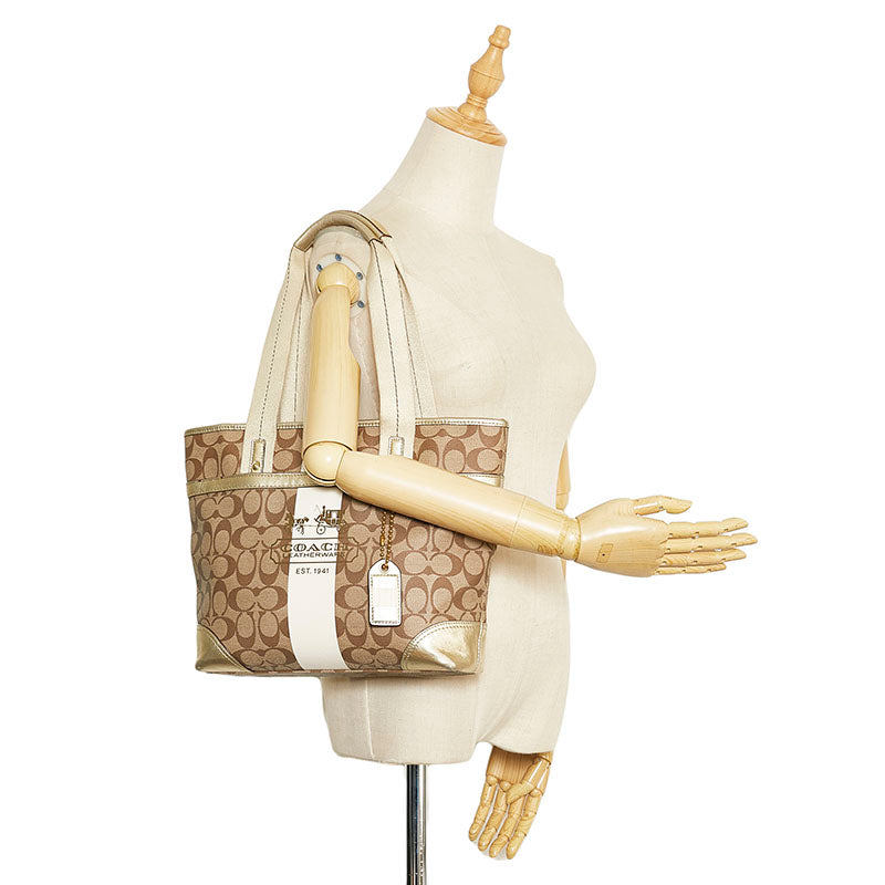 コーチ シグネチャー トートバッグ ショルダーバッグ 11350 ベージュ ホワイト PVC レザー レディース COACH 【中古】