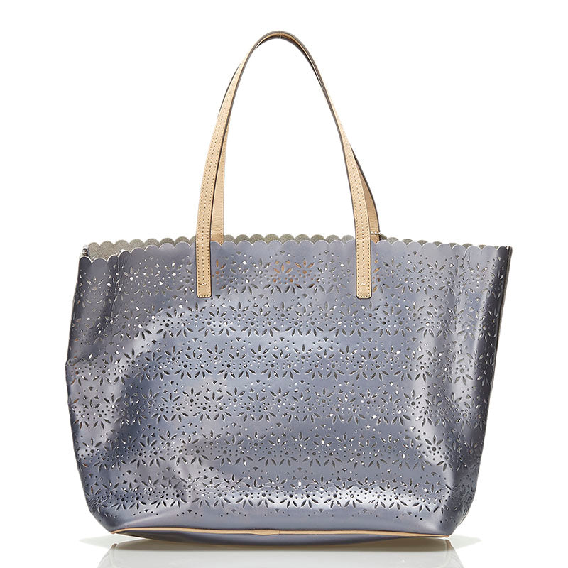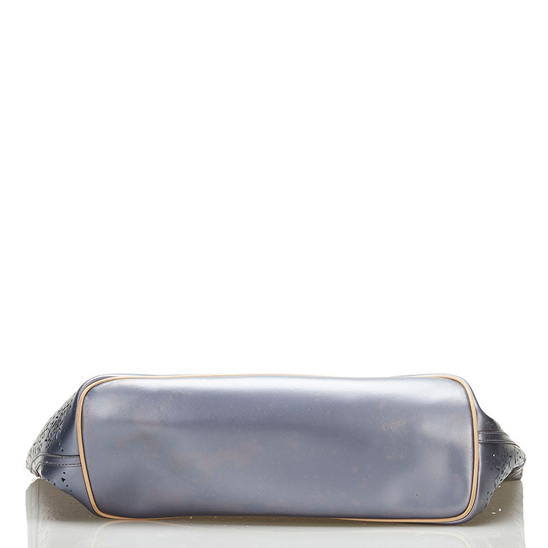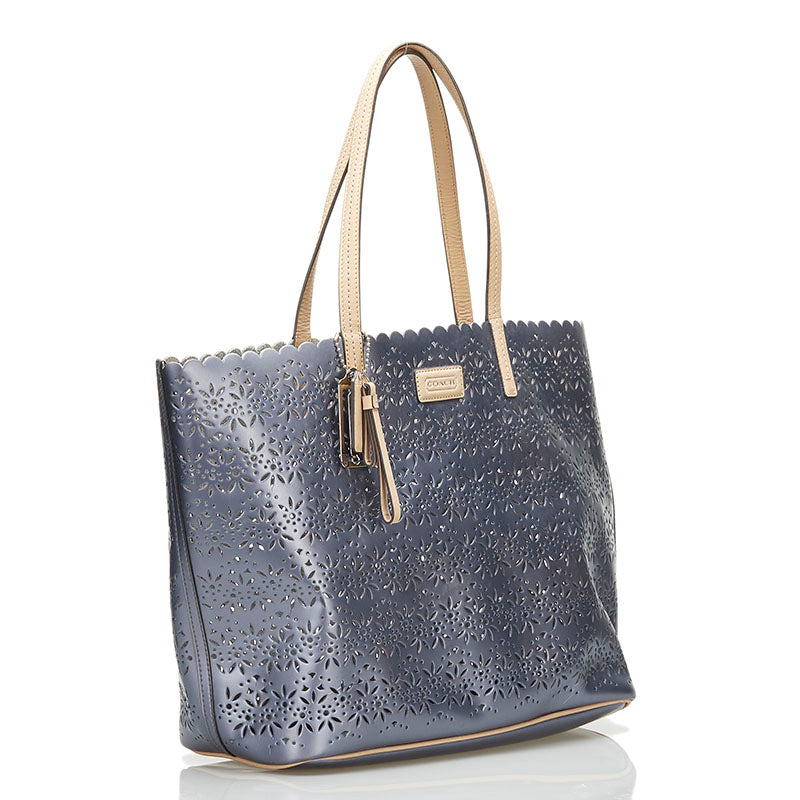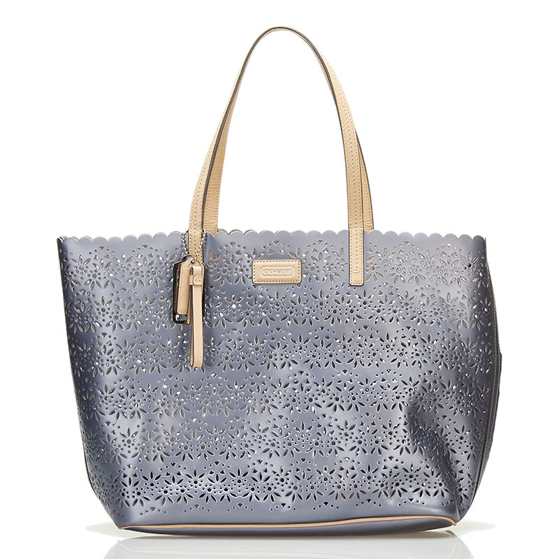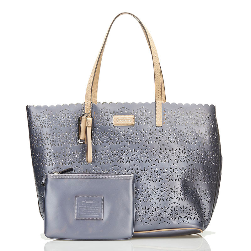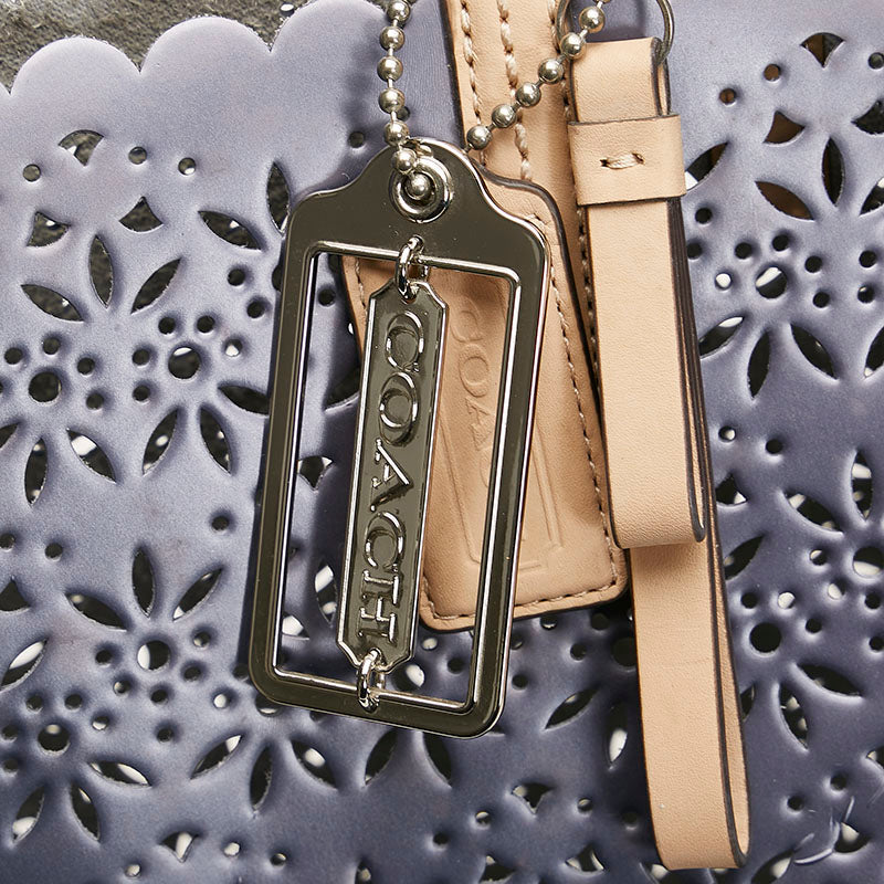 コーチ パンチング トートバッグ ショルダーバッグ グレー シルバー レザー PVC レディース COACH 【中古】