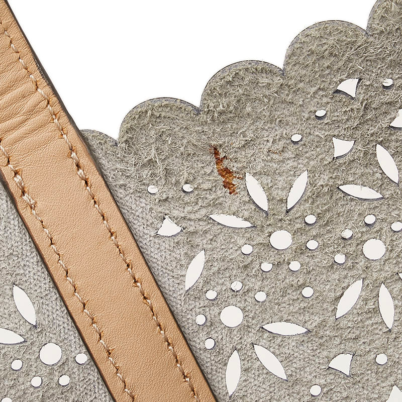 外側⇒変色・シワ・表面の浮き・小さな汚れ 底面⇒変色・小さな汚れ・角スレ ハンドル⇒持ち手に僅かに汚れ 金具⇒小キズ・僅かにクスミ 開閉口⇒ノリ跡・変色 内側⇒底面に変色 ポーチ⇒変色・ストラップ付け根に若干はがれ |