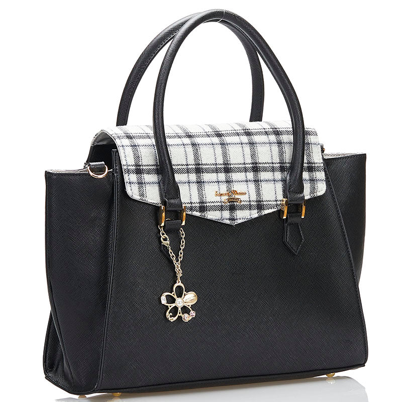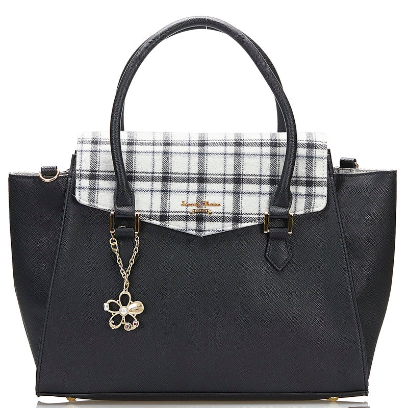 サマンサタバサ チェック ハンドバッグ ショルダーバッグ 2WAY ブラック レザー レディース Samantha Thavasa 【中古】