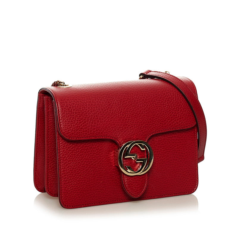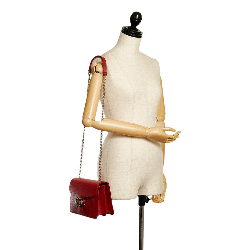 グッチ インターロッキングG チェーン ショルダーバッグ 510304 レッド レザー レディース GUCCI 【中古】