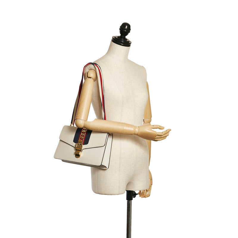グッチ シルヴィ スモール ショルダーバッグ 421882 ホワイト レッド ネイビー レザー レディース GUCCI 【中古】