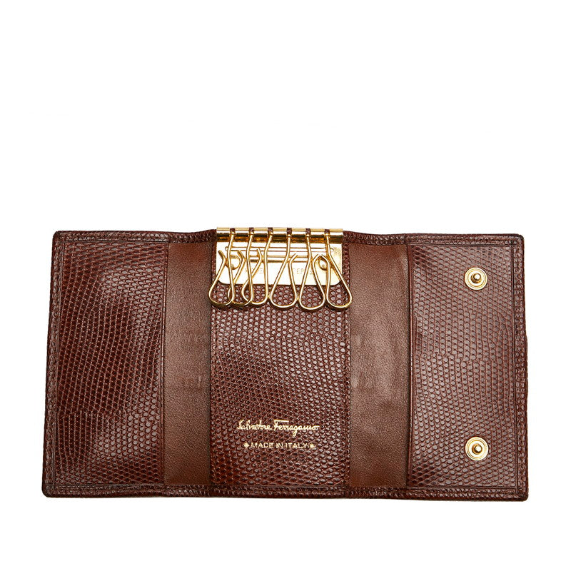 サルヴァトーレフェラガモ ヴァラ 6連 キーケース 22-3056 ブラウン レザー レディース Salvatore Ferragamo 【中古】