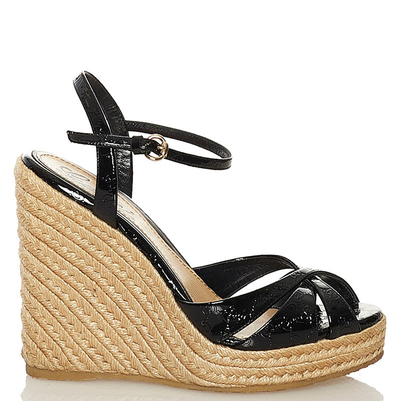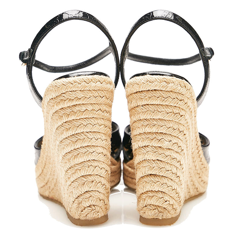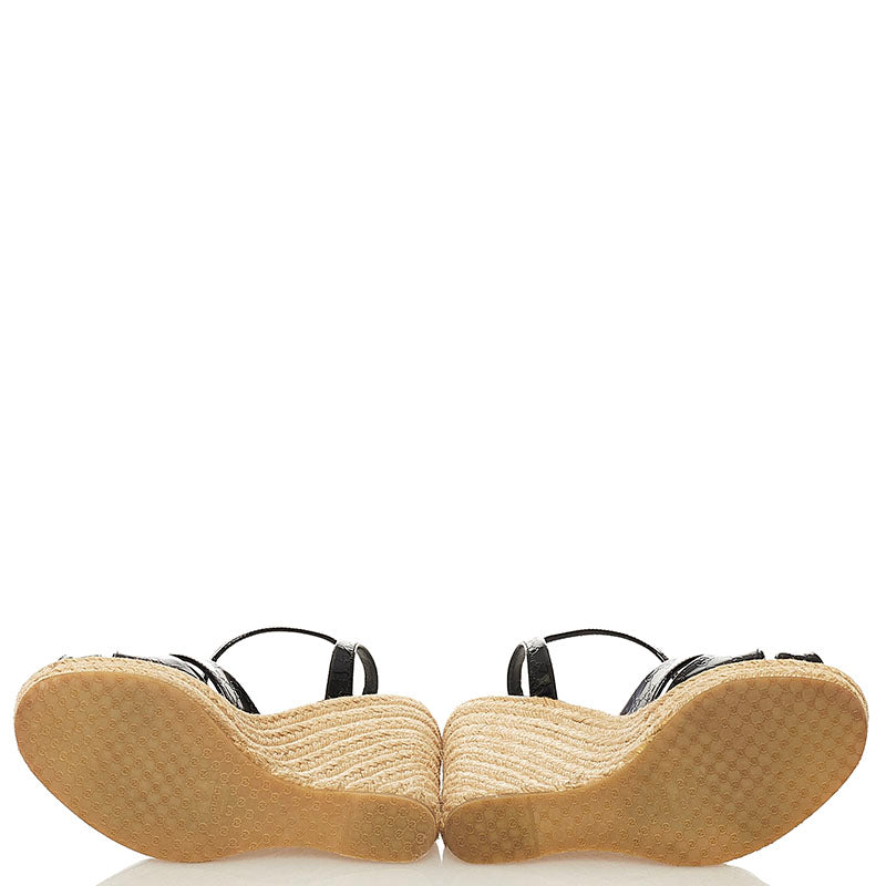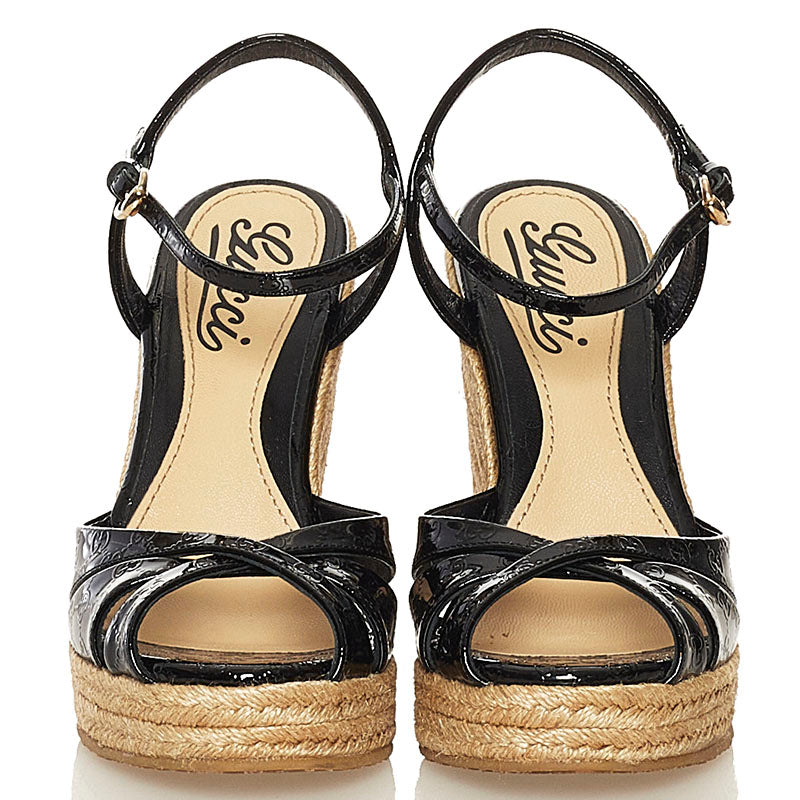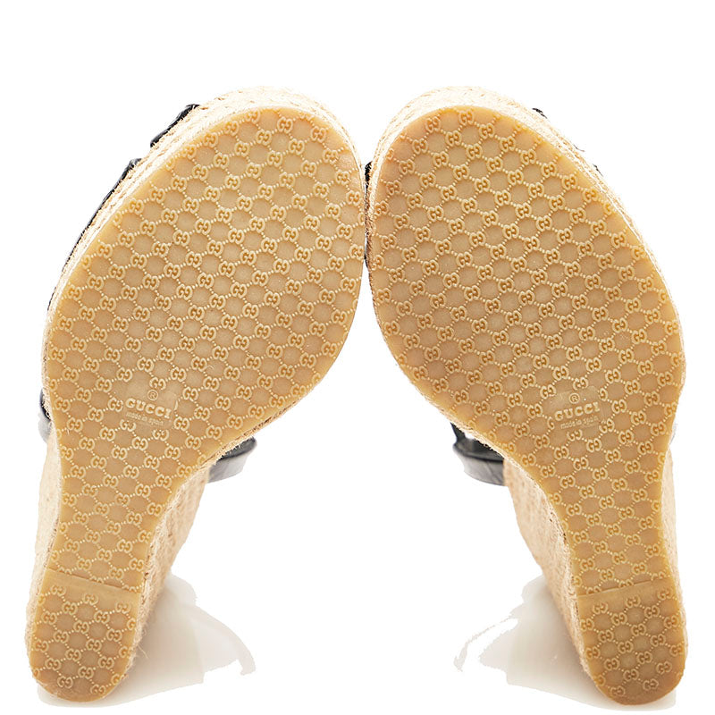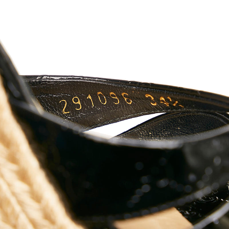 グッチ マイクロシマ GG ウェッジソール サンダル 291096 ブラック パテントレザー ラフィア レディース GUCCI 【中古】