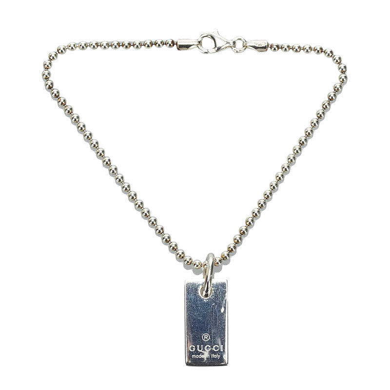 グッチ ロゴプレート ボールチェーン ブレスレット SV925 シルバー レディース GUCCI 【中古】
